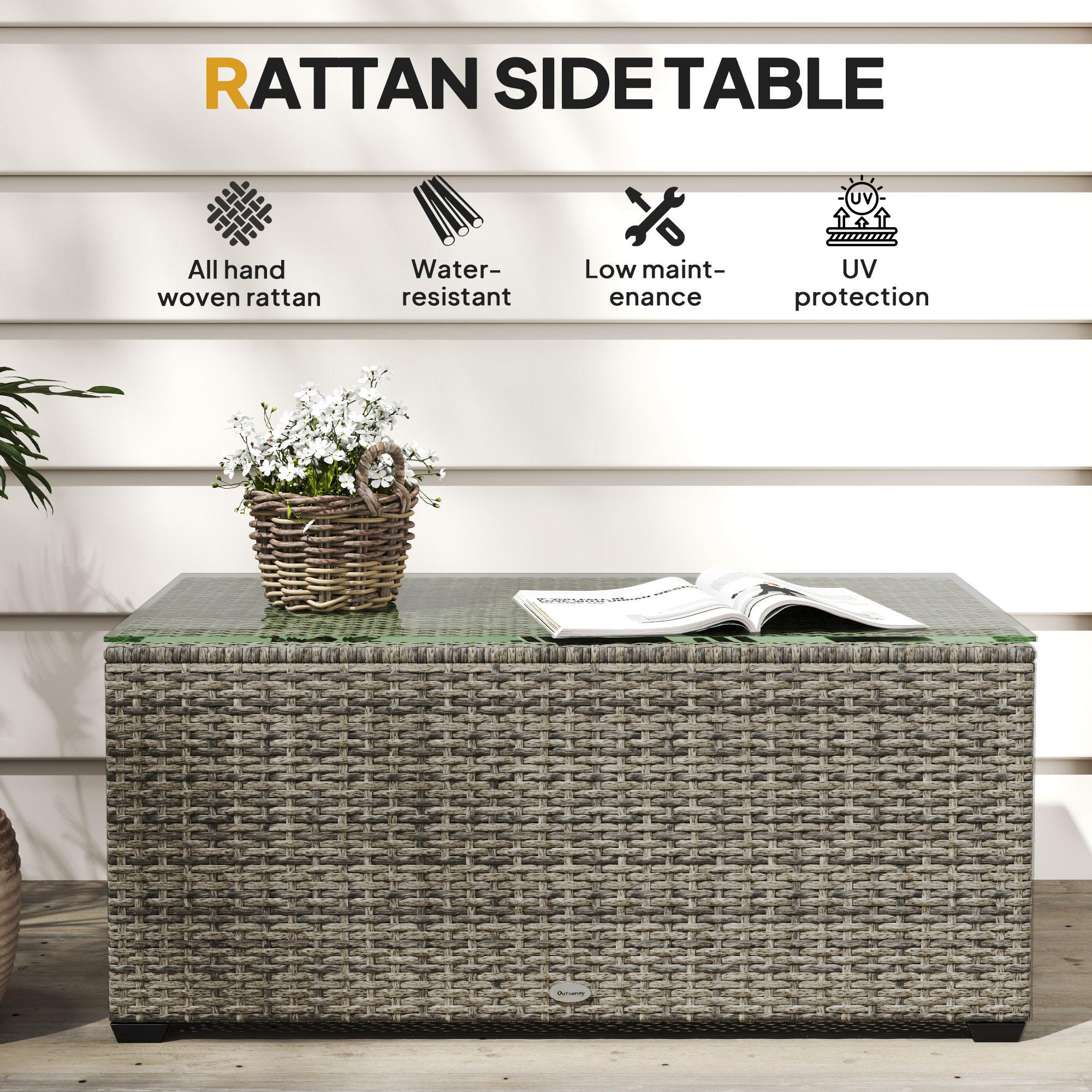 Outsunny 90 x 50cm Glass-Top Rattan Side Table - Dark Grey