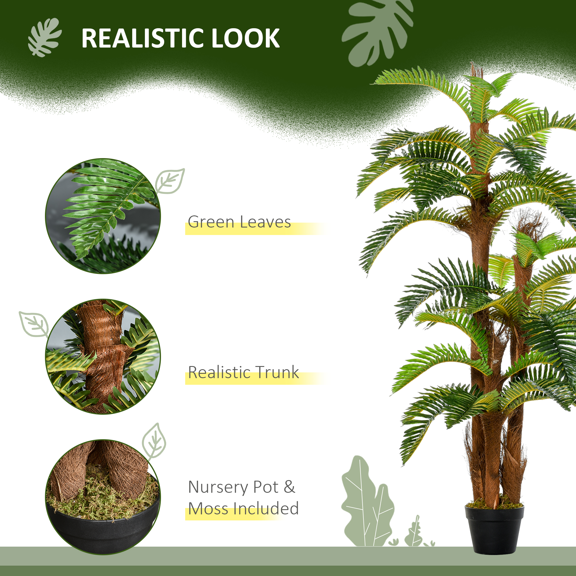 Bring beautiful greenery into home areas, without the upkeep - pick this artificial tree, from Outsunny for a breath of life this season and beyond. It's made from quality plastic for a long life and boasts a realistic colour and texture. The artificial plant design means zero maintenance too, so it will keep looking the same even without any water. Finished with a cement-filled pot so it stands proud where it stands.