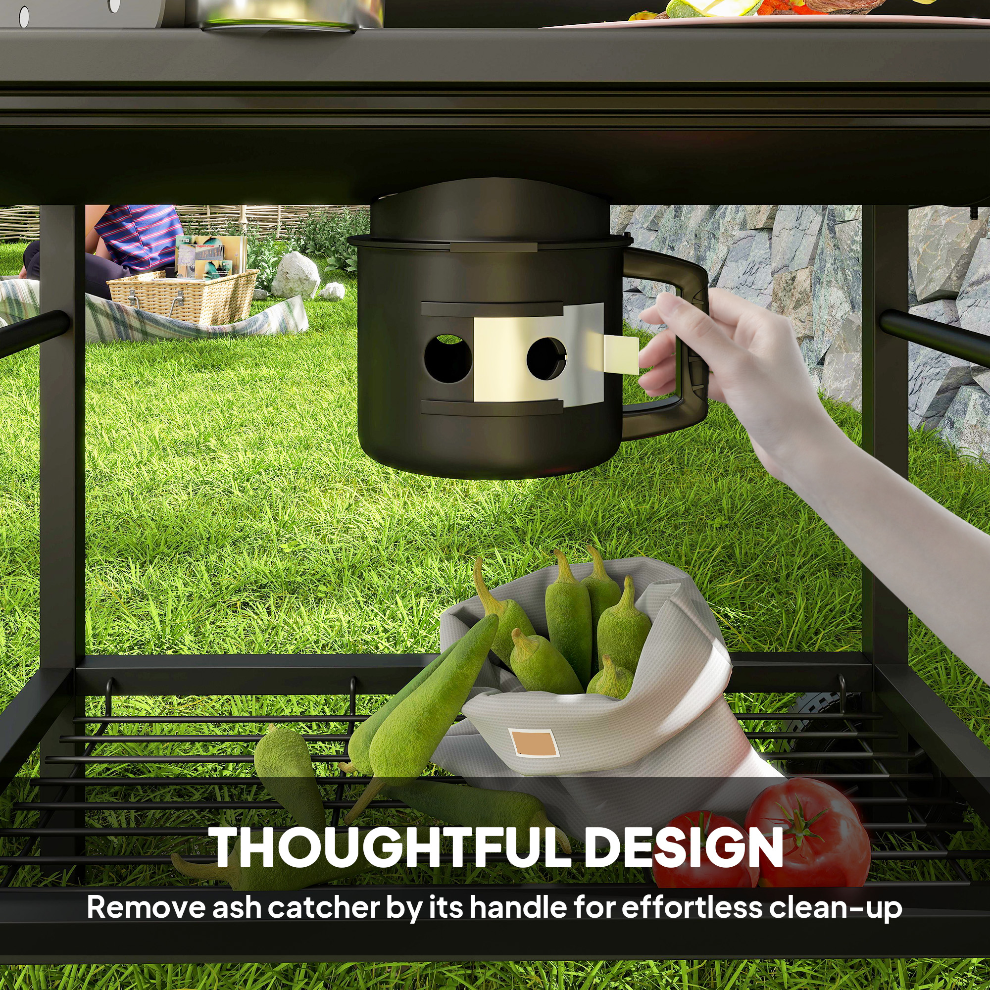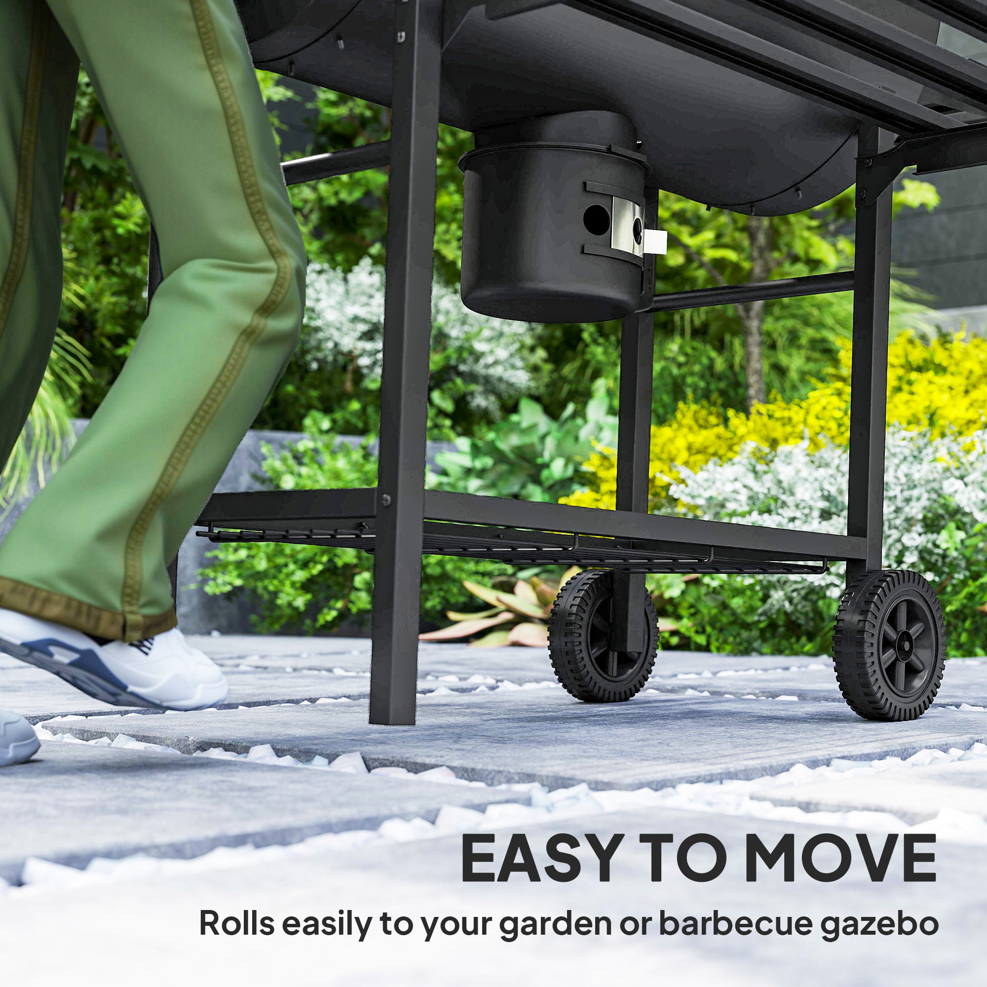 Fire up the fun with the Outsunny barrel barbecue grill— your essential companion for sizzling, flavour-packed cookouts! It has a spacious grilling area and effortlessly cooks up to 8 burger patties and 10 sausages. Take control of your BBQ experience with the adjustable side vents and a built-in thermometer, ensuring precision heat management for perfectly grilled delights every time. Get ready to grill like a pro!
