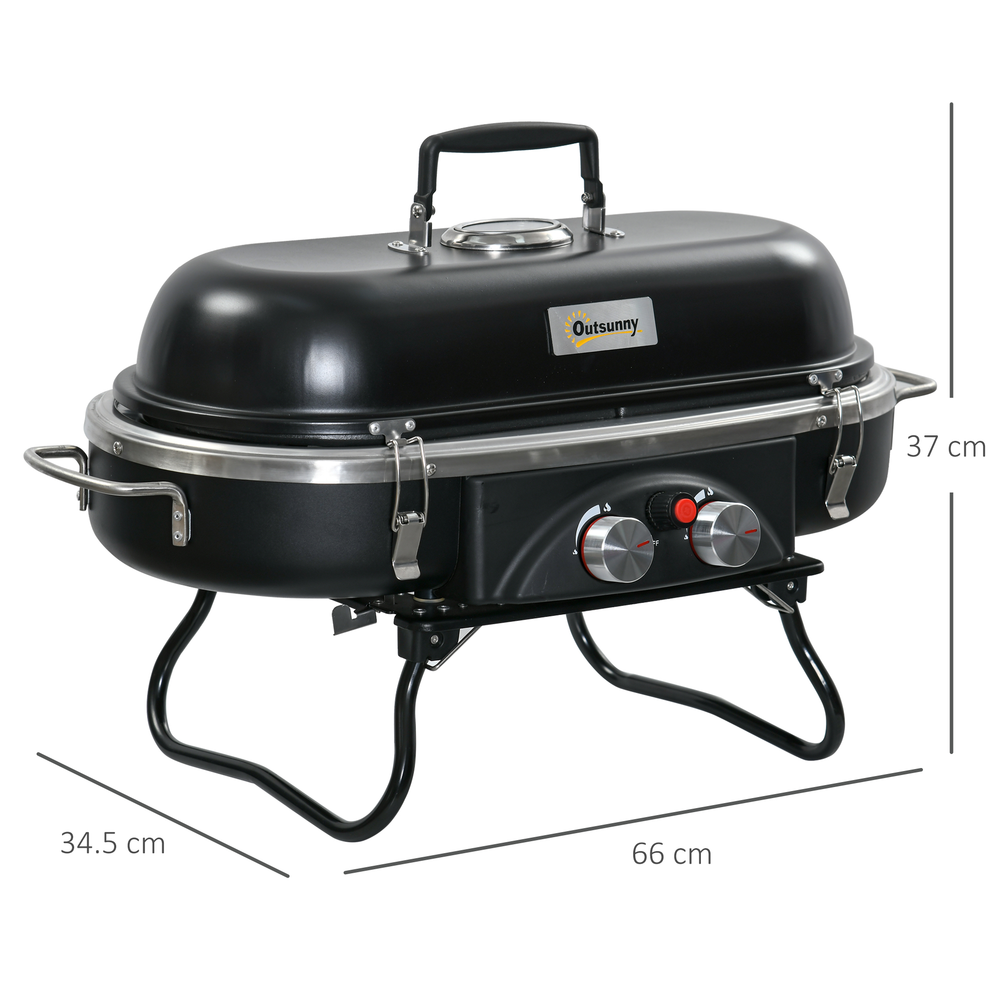 Delicious BBQ food, practically anywhere? No problem with this portable gas BBQ from Outsunny. Even though compact, the small gas barbecue comes with two gas burners so you can cook two different foods at once: your food will be done quicker than imagined. The lid, with a safe cool touch handle, features a thermometer so you can view the temperature when it's closed - no over smoking or burning. A foldable design, all you need to do it chose which table you'll be bringing the flavours to this summer.