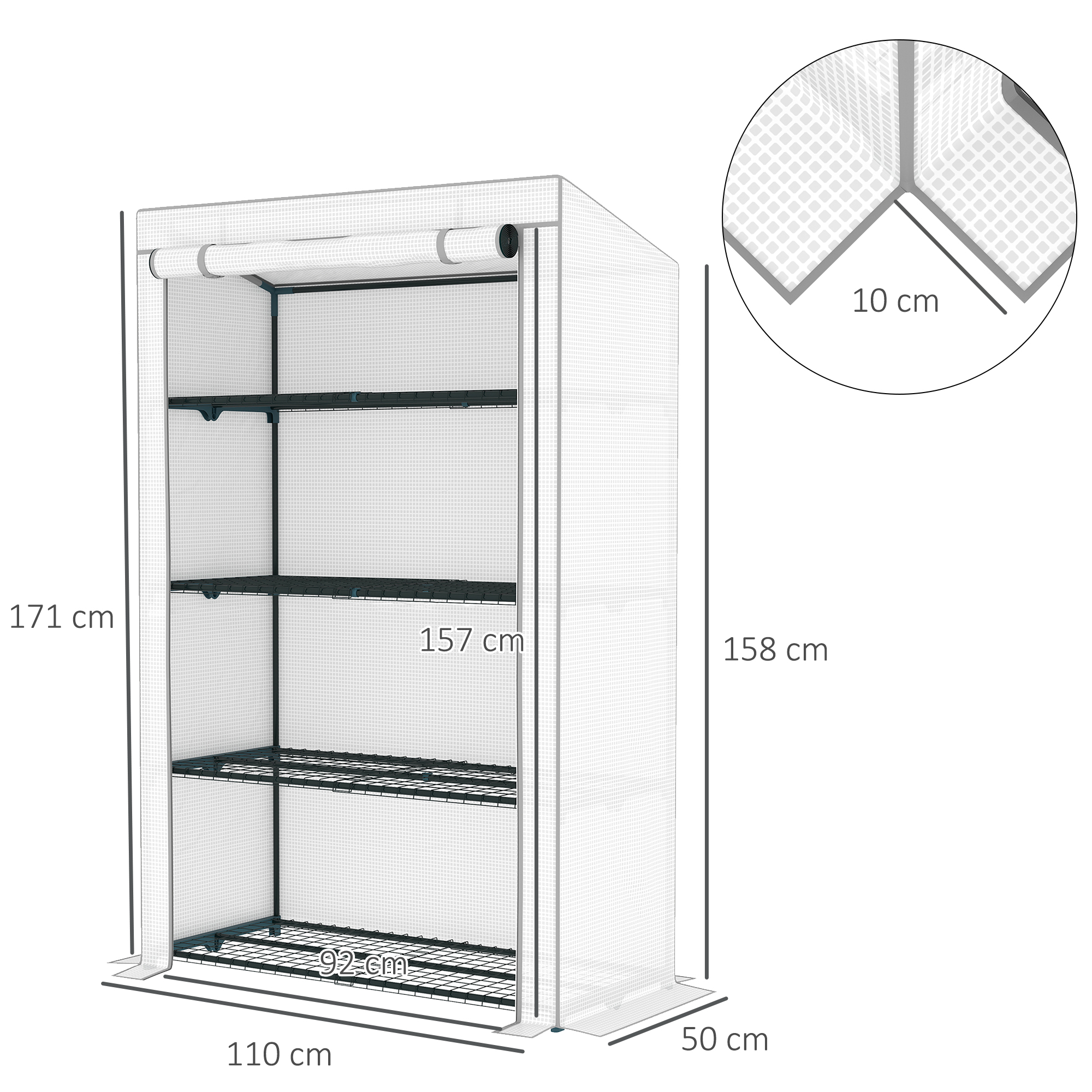 This Outsunny four-tier greenhouse offers lots of space for flower pots, seed trays and more; the inside is protected with the 140g/m² plastic cover - shields plants from outer weather, whilst allowing nourishing sunlight through. Complete with a roll-up zipped for easy access and fresh air, whenever you want.