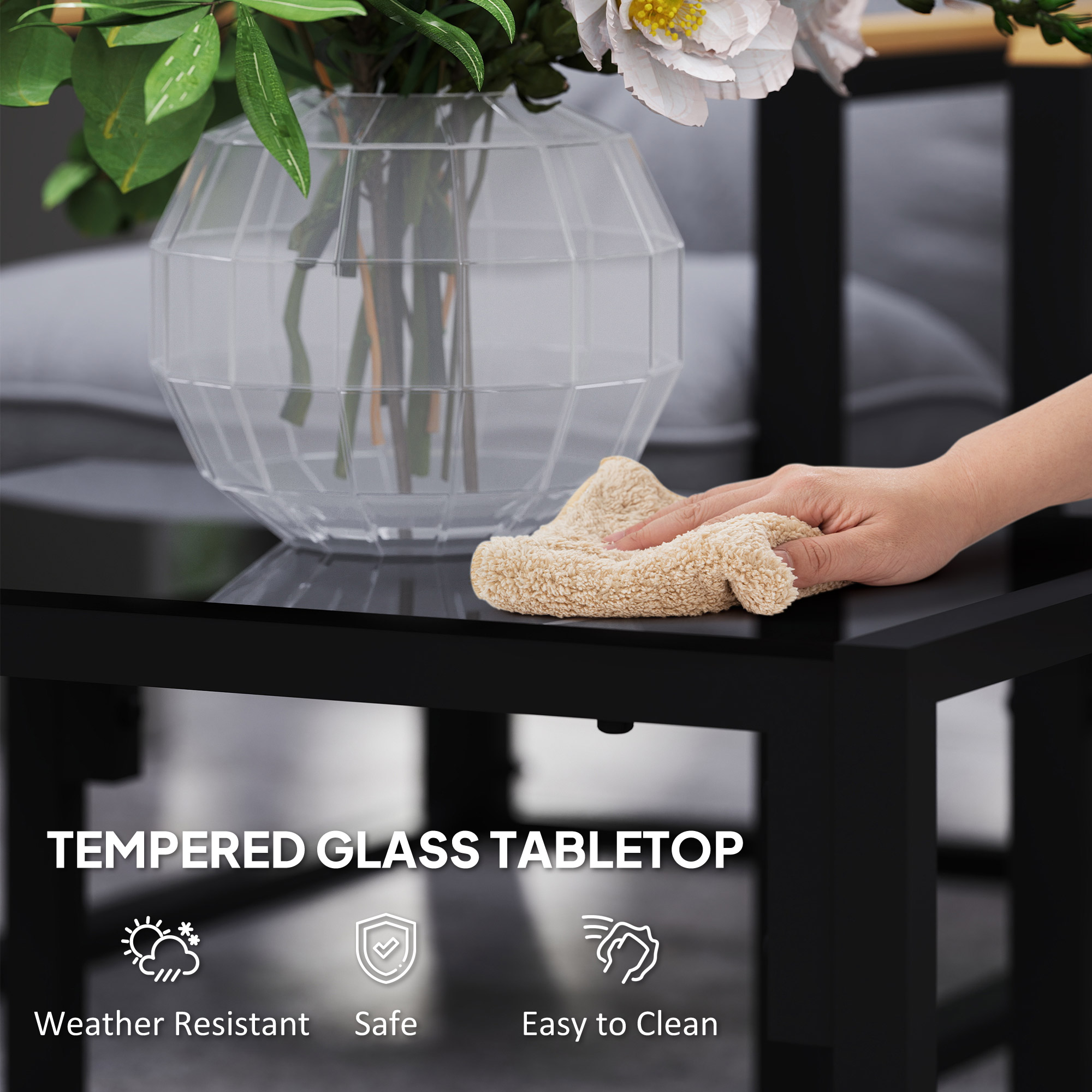 Create an inviting outdoor space with the Outsunny conservatory furniture. This garden set includes a loveseat, two armchairs and a matching coffee table, all built with steel frames for added durability. The cushions provide extra comfort, making it great for relaxing or entertaining. The tempered glass top table adds a stylish yet tough element, suit for drinks or decorations. Whether in your garden, balcony or conservatory, this outdoor table and chairs can elevate any outdoor area with ease.