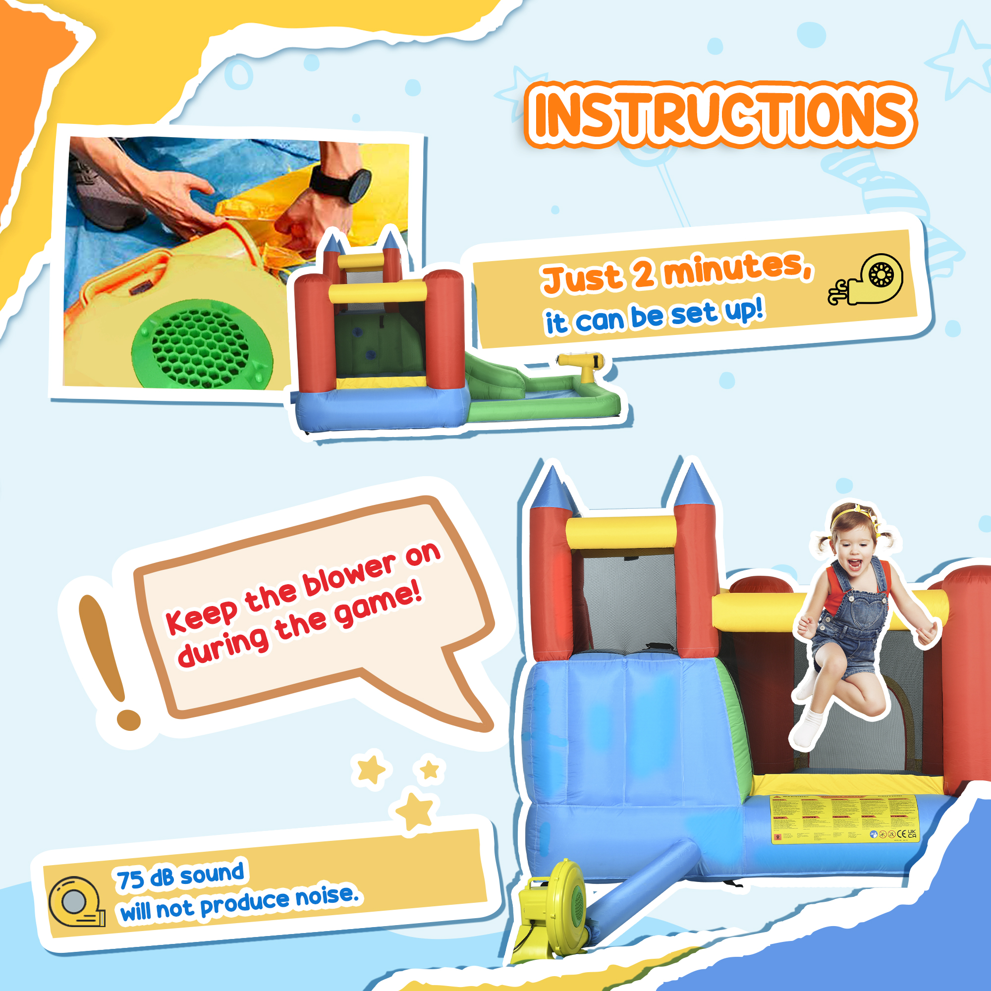 A trampoline, slide, water pool, climbing wall and water gun, this Outsunny kids bouncy castle with blower has it all for endless fun. With an electric air blower included, you'll have it set up in minutes, ready for hours of entertainment, thanks to the five ground stakes keeping the castle firmly secured to the floor. It's big enough to fit four children at once; an exciting way to play games with friends.