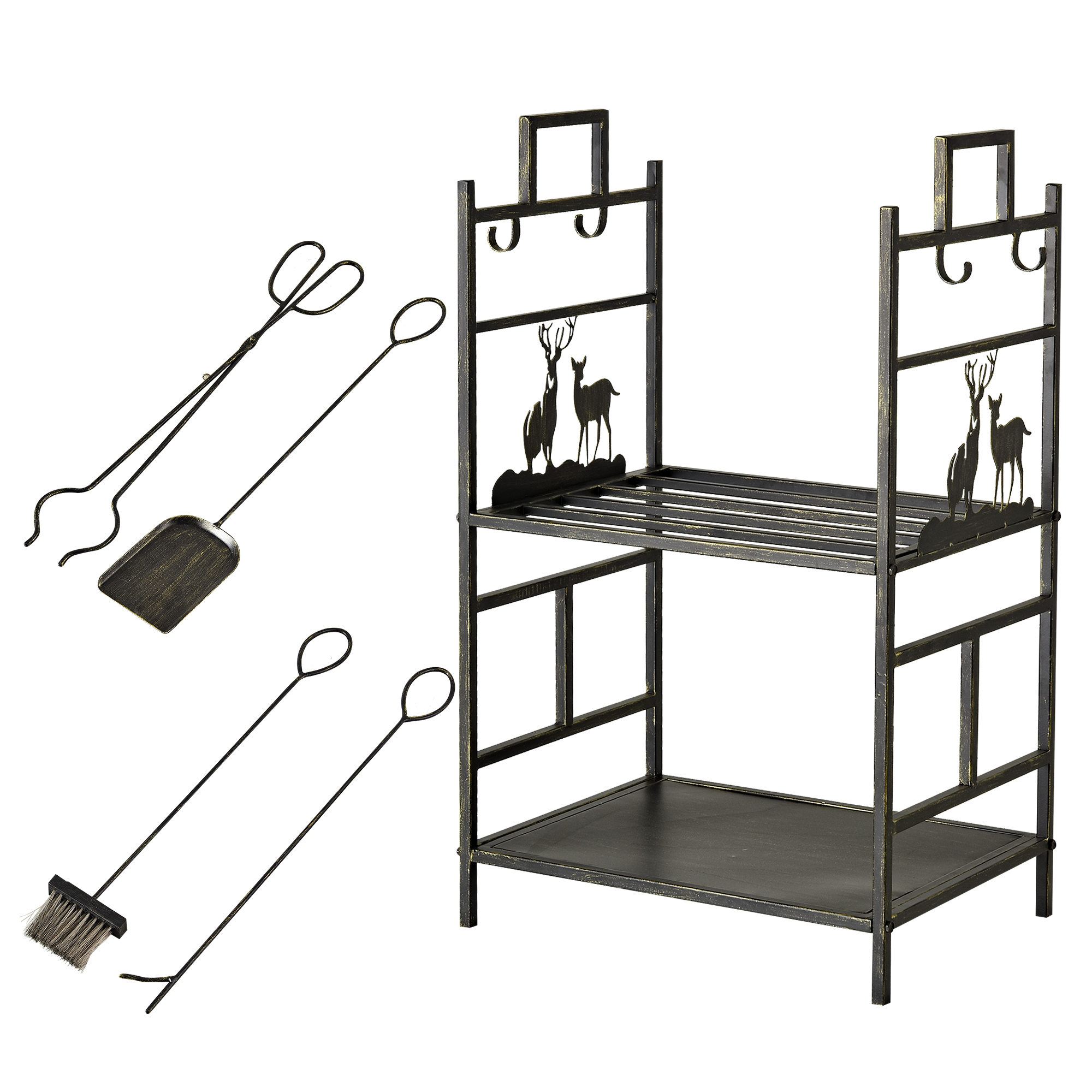 Showcase your log holder basket in style with this shelf rack from Outsunny. With two tiers and able to support up to 30kg, there is plenty of room and sturdiness for keeping lots of wood stored together. The frame is made of solid - it is solid and tough and covered in a gold tone colourway for a beautiful look. Feature two hooks and it comes with a shovel, broom, firestick and tong to help you move woods and keep the area clean. It's finished with handles on the top to move around easily.