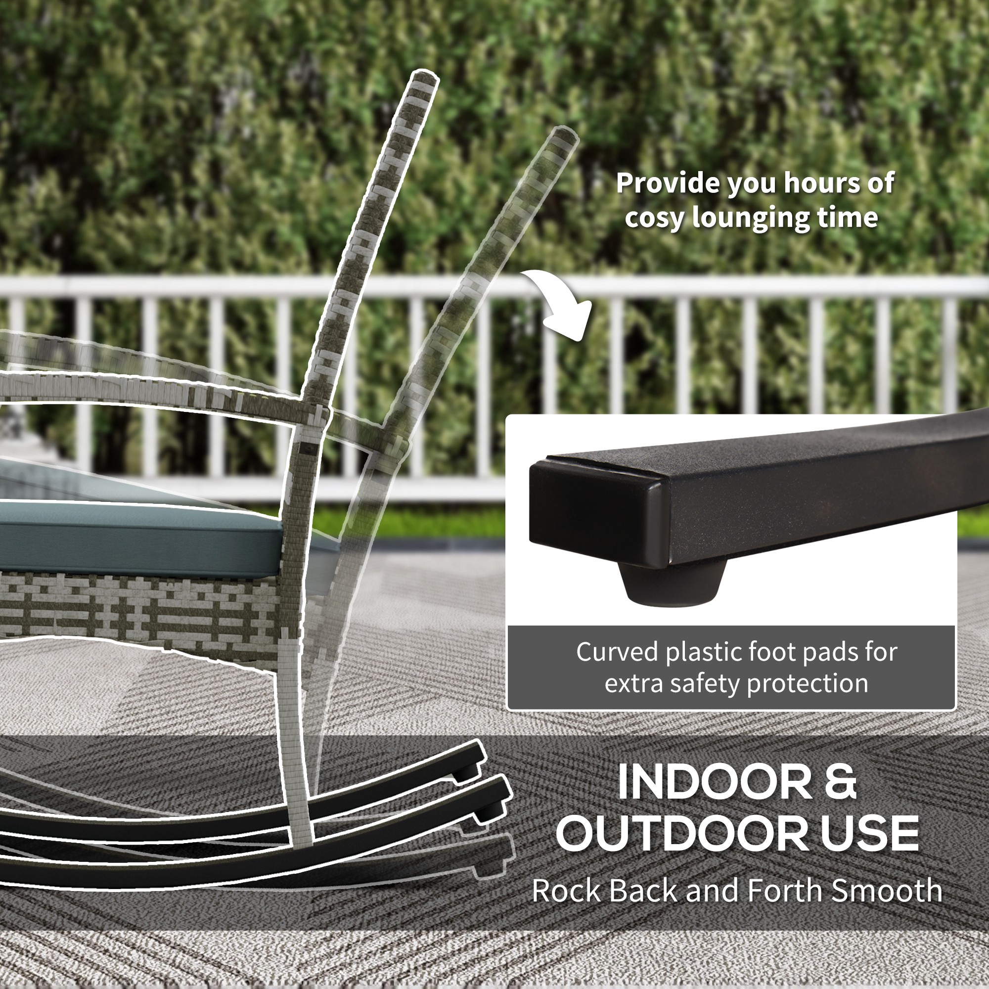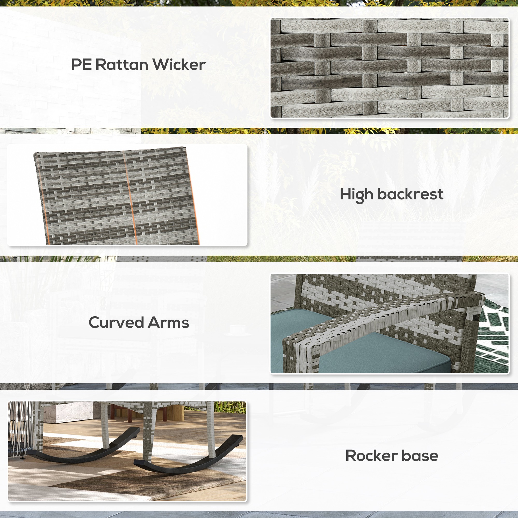 - Material: PE rattan, Polyester fabric, Steel frame