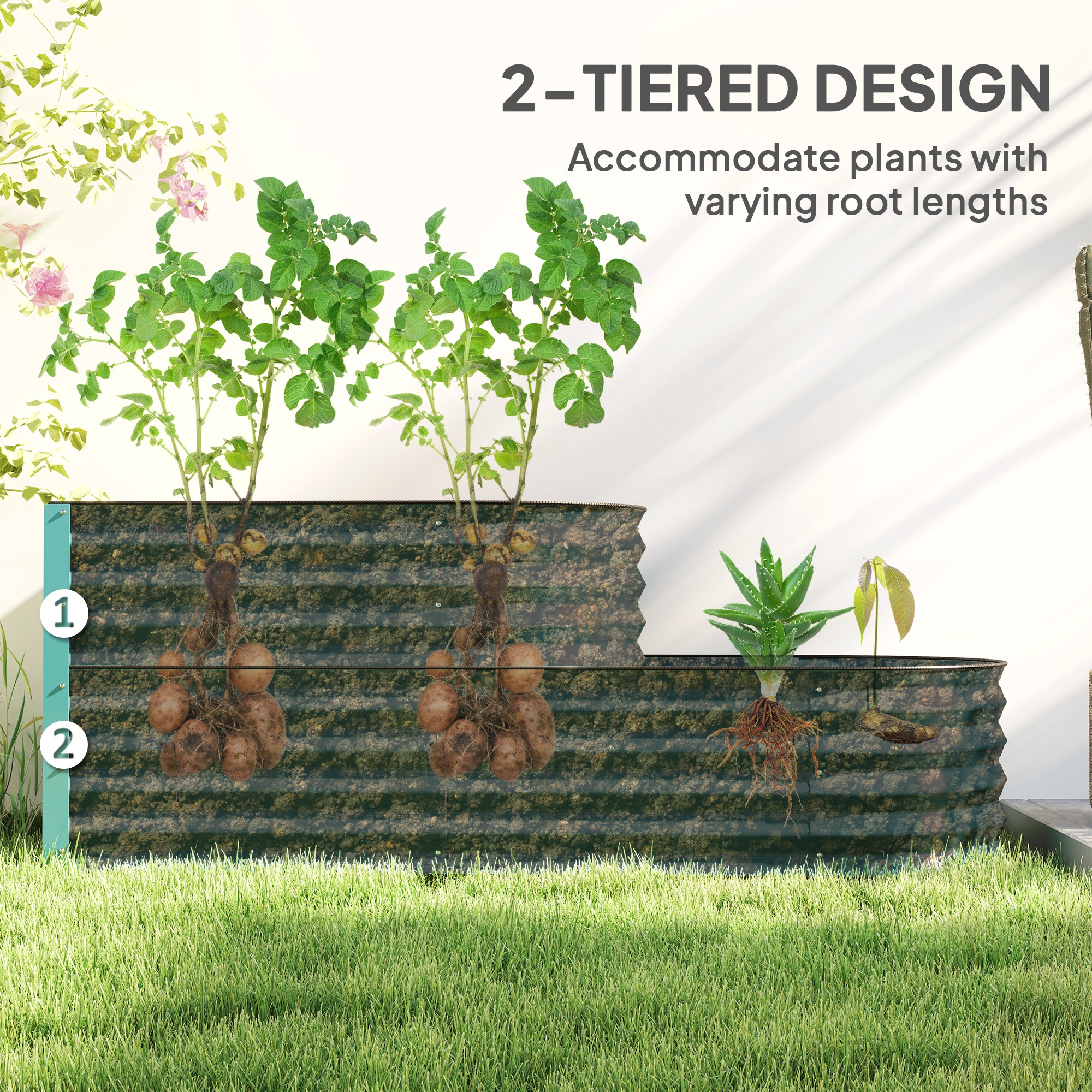 Outsunny Two-Tier Galvanised Steel Garden Planter - Dark Green