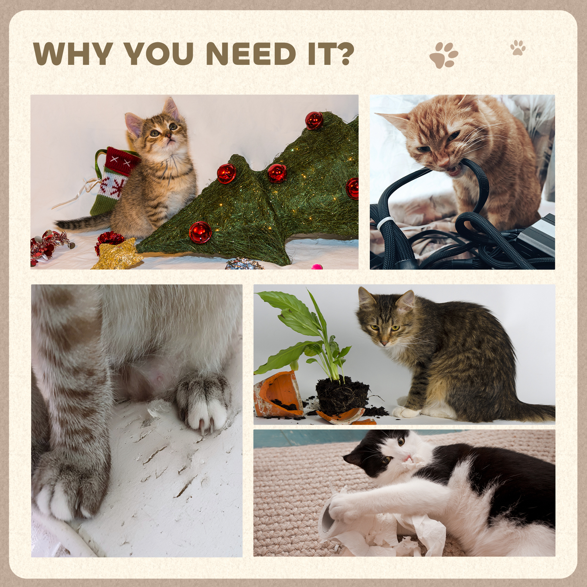 - Scratching materials to dig their claws, deterring them from using furniture