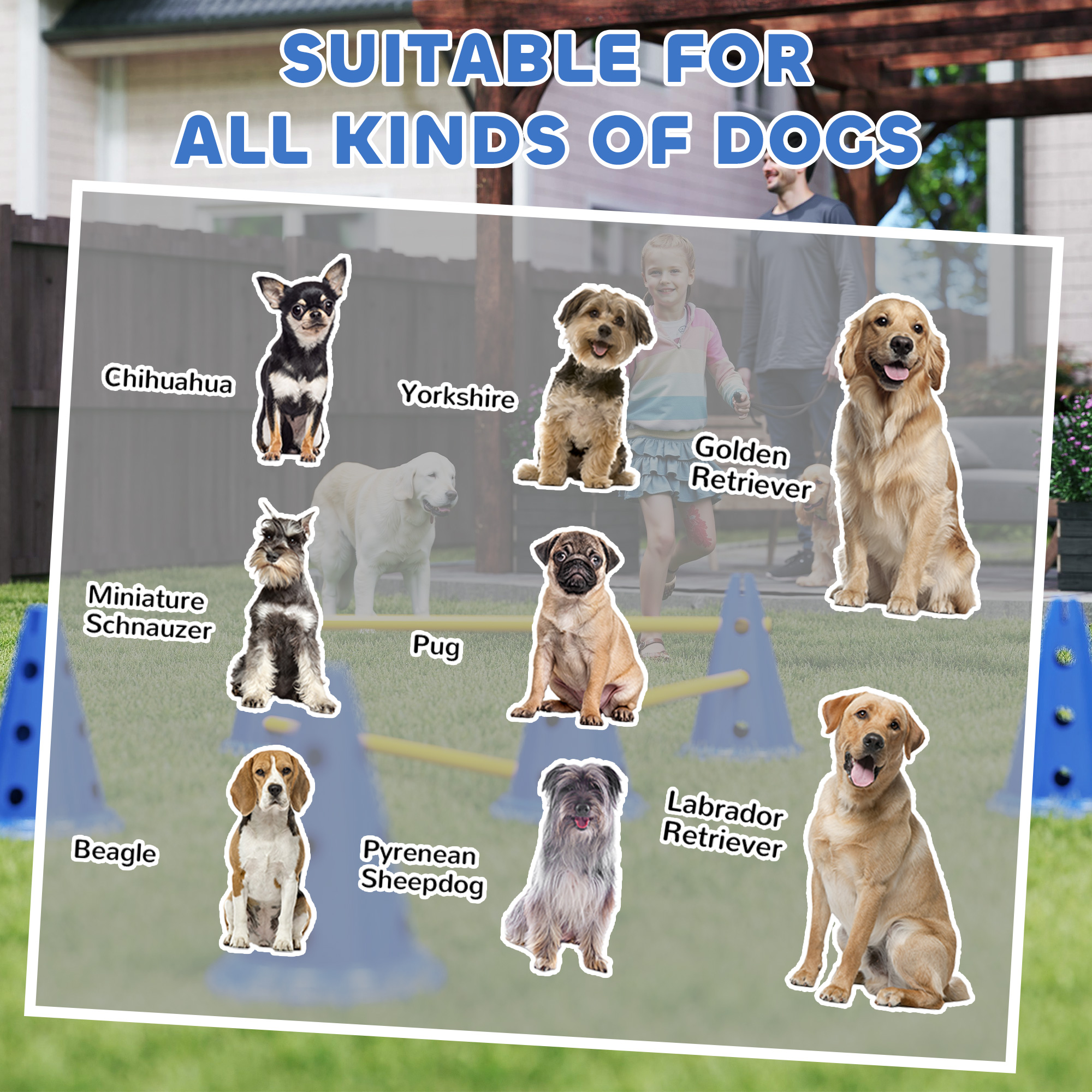 Help your pet reach their potential with the PawHut agility set! This four-piece training equipment has adjustable height, suitable for all sizes and skill levels. Its vibrant orange and yellow colours are designed to capture curious pups' interest, making training easier. Made with safe ABS material, it includes a bag for easy transport, so you can set it up in your garden, at the park or anywhere else. Keep your pet active and strengthen your bond while having fun, no matter where you are!