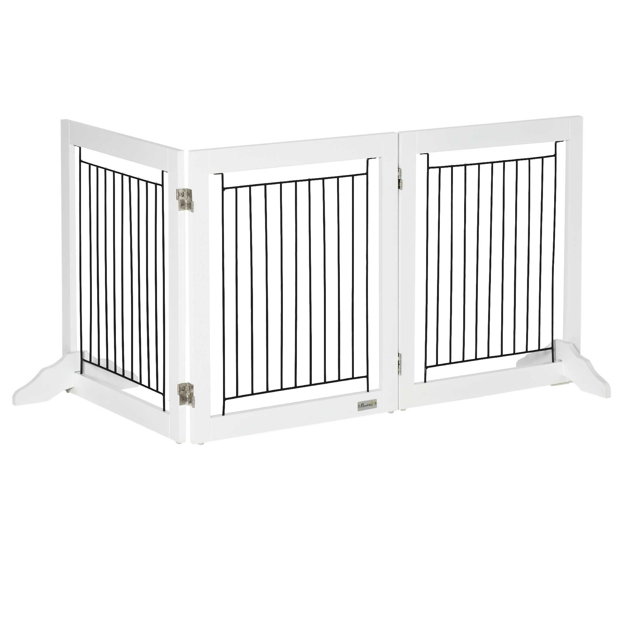 Keep pets away from rooms when required with this PawHut pet stair gate. Made from sprayed metal with lead-free treated surface for strength and safety. 74cm to 101cm wide, allows to fit into different sized spaces with ease while 104.1cm high - the extra tall gate makes it difficult for pets to get over. Slide and lift, the handle is easy to open, allowing you to pass through quickly without your pet escaping for security. Cat door provides a secure separation between cats and dogs.