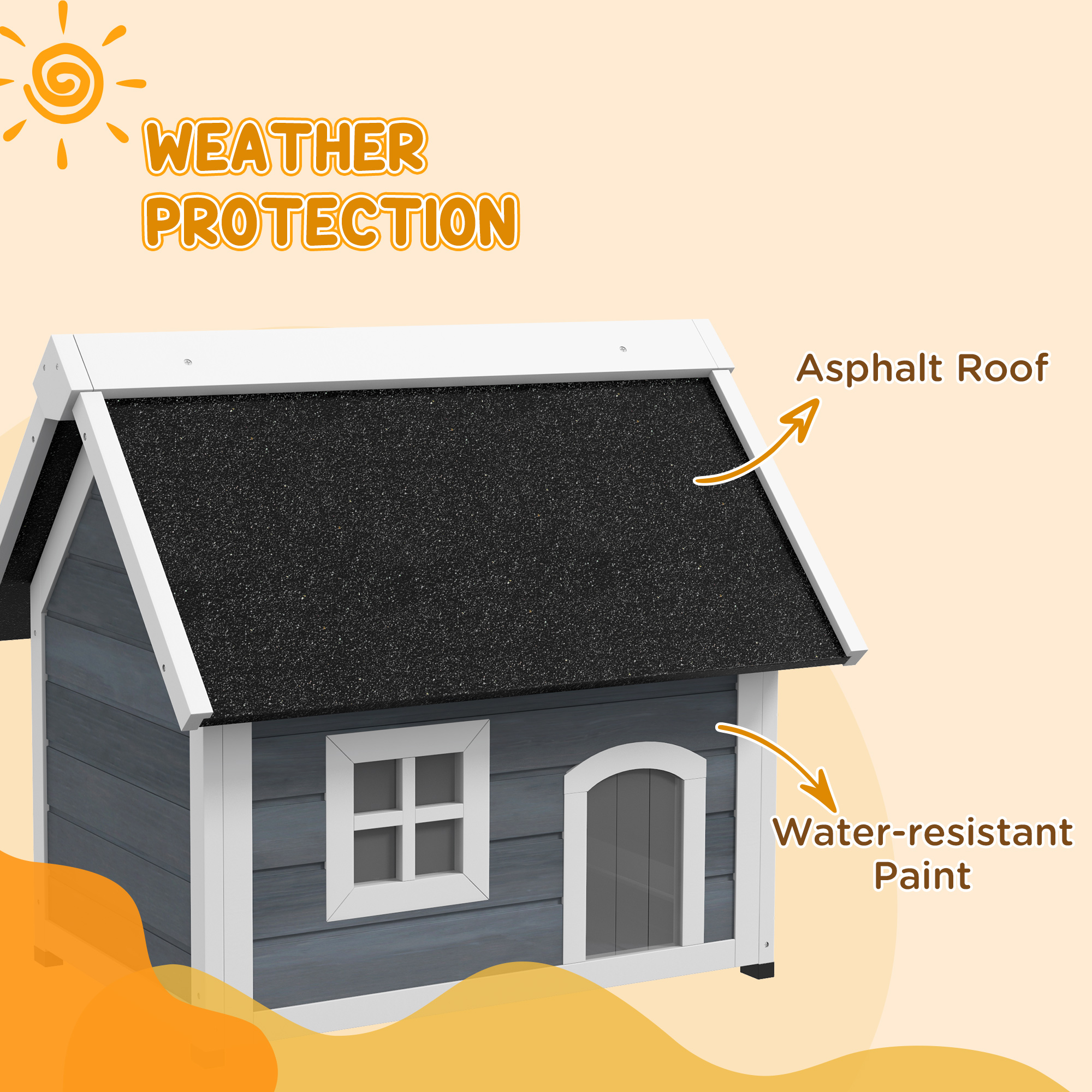 An outdoor sanctuary to live for, this PawHut cat house is a spacious home for pets to thrive in. Featuring a two-layer design, a jumping platform and an observation window, it offers endless entertainment and relaxation. Made from fir wood, this cat house is built to withstand outdoor elements. With four doors for easy access, it's a great outdoor haven for feline friends. Let your cat indulge in outdoor adventures with style and comfort.