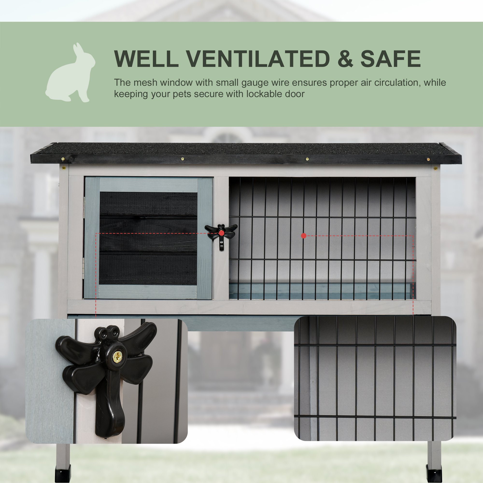 - Two-level design of a large living space and outdoor run area, giving your small pet flexibility to rest, relax and enjoy fresh air