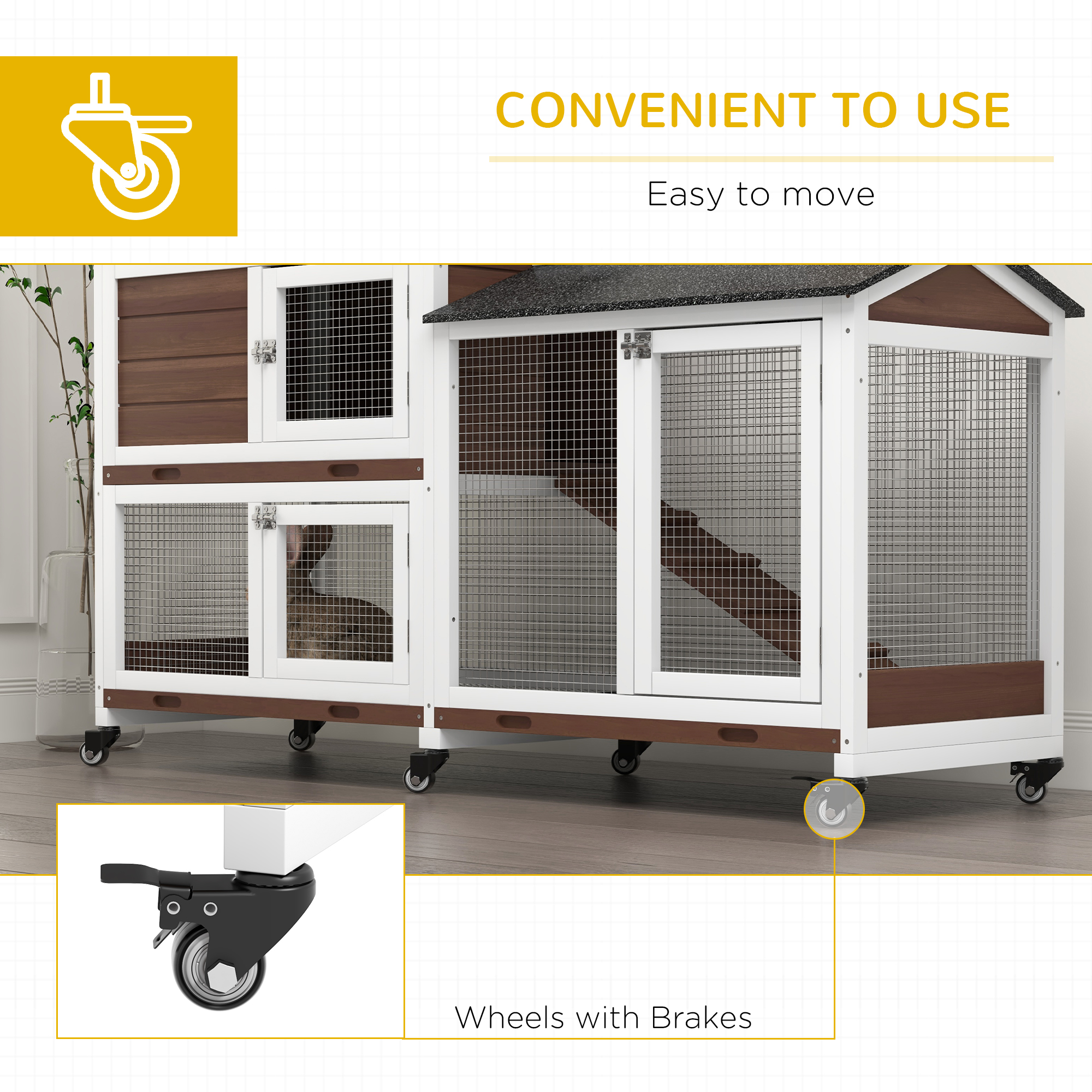 The ideal home for rabbits and other small pets – this spacious rabbit cage from PawHut consists of two floors with a large house and a guinea pig run – they'll roam easily using the ramp. Made from solid fir wood, the indoor guinea pig cage is covered in water-resistant paint for protection against wet weather, whilst the tilted asphalt roof ensures the area is dry. Watch your pets in their new house through the mesh wire, which keeps the area ventilated.