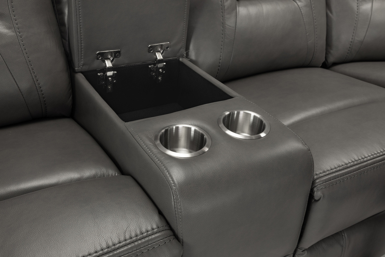 The Poppy range is available as a Large Corner in Grey Fabric, Black Faux Leather and Grey Faux Leather. This comfy large corner features a console with lift up storage and cup holders.