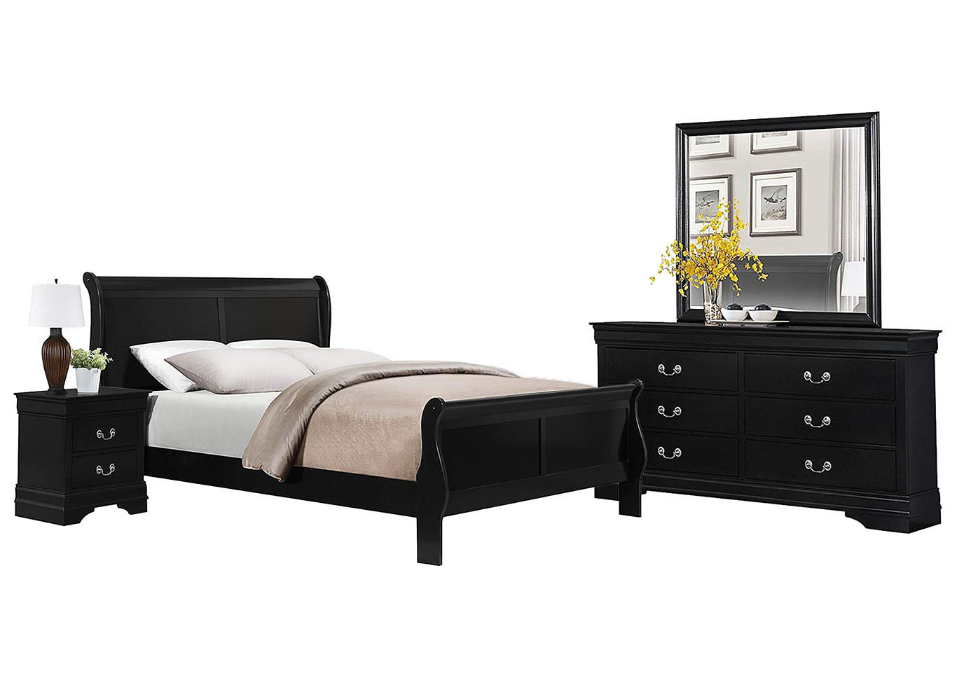 A range of baroque style furniture combining elegance and chic for your bedroom, living room, dining room, sofa, and even your TV area. This bedroom will surprise you with its brilliant diamond-shaped design adorned with rhinestones subtly framed with mirror-effect bands. Matched with LED lighting, the large storage bed (box springs included) offers an optimal comfort and a glamorous atmosphere. The led bedside tables perfectly complement the charm of the padded headboard surrounded by a mirror effect decor. The led dressing table with its large mirror and these drawers specially designed to store all your personal effects. Optimize your storage with the large sliding wardrobe, worthy of a walk-in closet with these drawers, wardrobes, and numerous storage spaces. The refined baroque style of this range of furniture will enhance your bedroom decor.