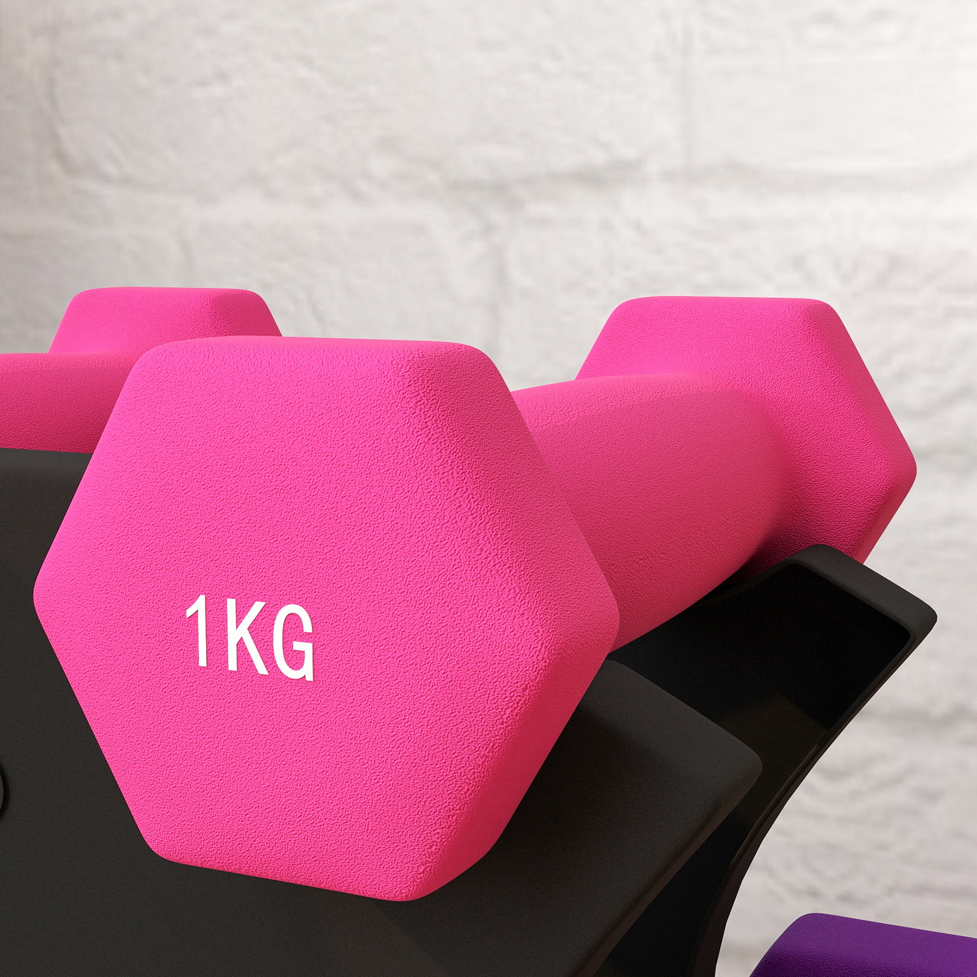 Switch up your fitness routine, adding muscle building to your workout. This SPORTNOW weights dumbbells set, which includes two 3kg, two 2kg and two 1kg hand weights and a dumbbell stand. Its hexagonal shape stops the weights from rolling away. Non-slip handles give you a secure grip, whilst the plastic covering ensures your floors don't get damaged – great for home workouts. Turn any space into a gym zone, staying fit and active.