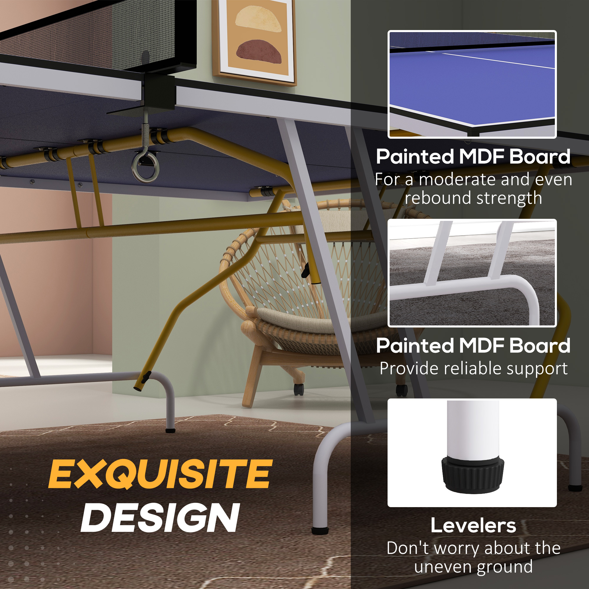Love table tennis? Now you can play at home with the amazing SPORTNOW table tennis table. It cleverly folds into quarters for easy storage. The adjustable footpads ensure a level playing surface, and it can handle up to 50kg. It's incredibly versatile, doubling as a dining or gaming table by simply removing the net. Plus, it comes with a cover to keep it clean and ready for your next game.