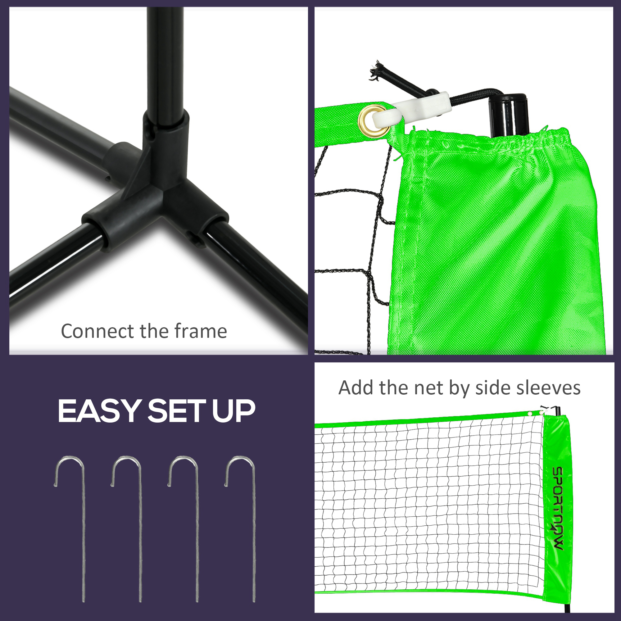 Enjoy fun-filled activities with family and friends with this SPORTNOW badminton set. Including rackets, shuttlecocks, pickleballs, a volleyball, a net with stand and a pump, you'll have everything for games of badminton, volleyball or pickleball. The net adjusts between 107-155cm, great for parks, beaches, gardens or sports halls, while the stabilising feet ensure balance. Quick to set up and great for all ages, it makes gatherings more enjoyable.