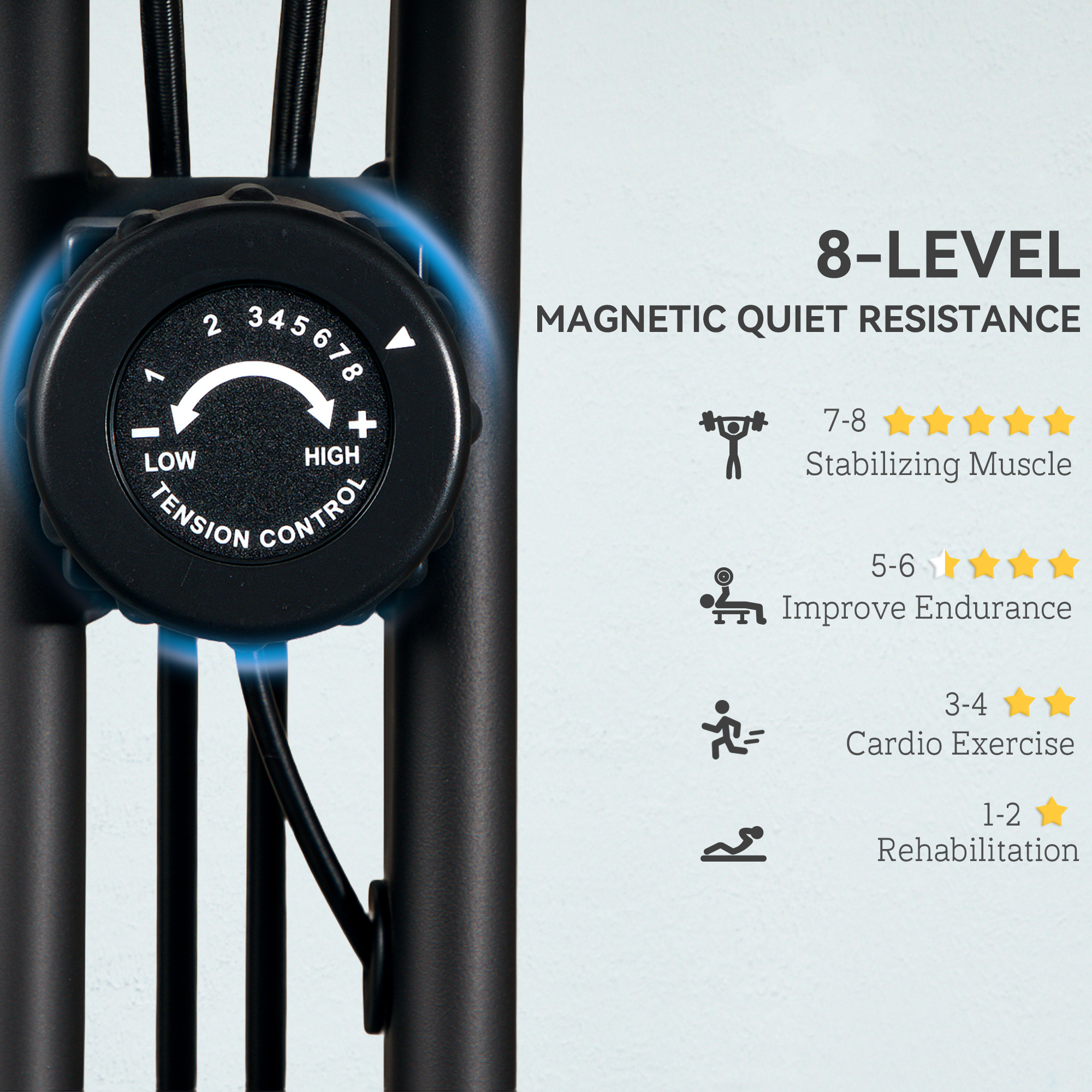 - Eight-level magnetic resistance ensures a smooth, silent exercise