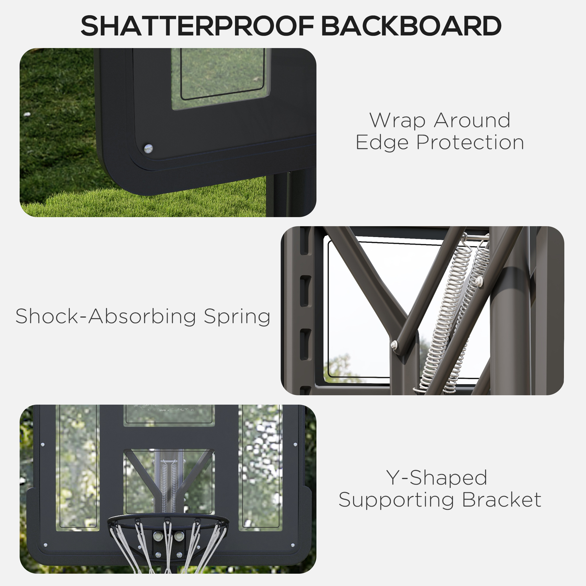 - Shater-resistant backboard with springs absorbs impact, enhancing durability