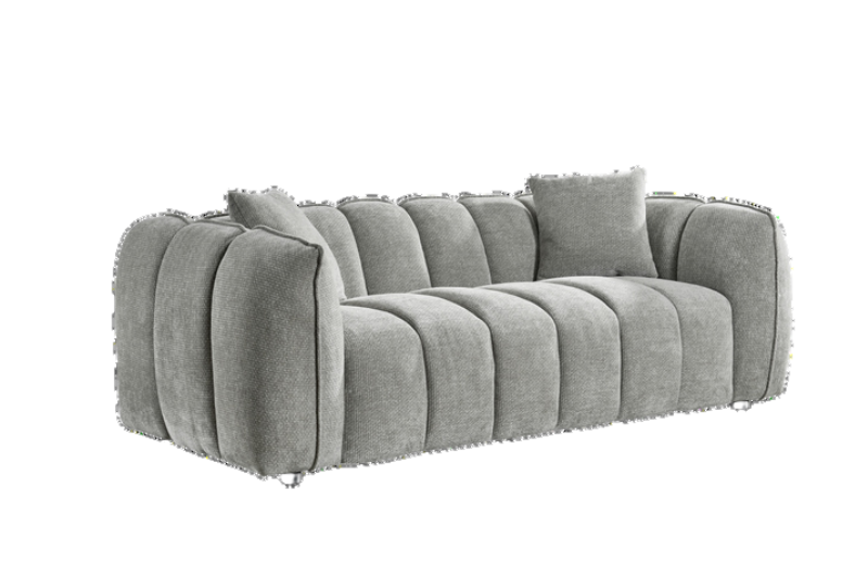 Designed with a distinctive channeltufted profile and sumptuously soft upholstery, it brings a contemporary touch to any living space. Generously cushioned with deep seating and matching throw pillows, this sofa is perfect for lounging and relaxation.