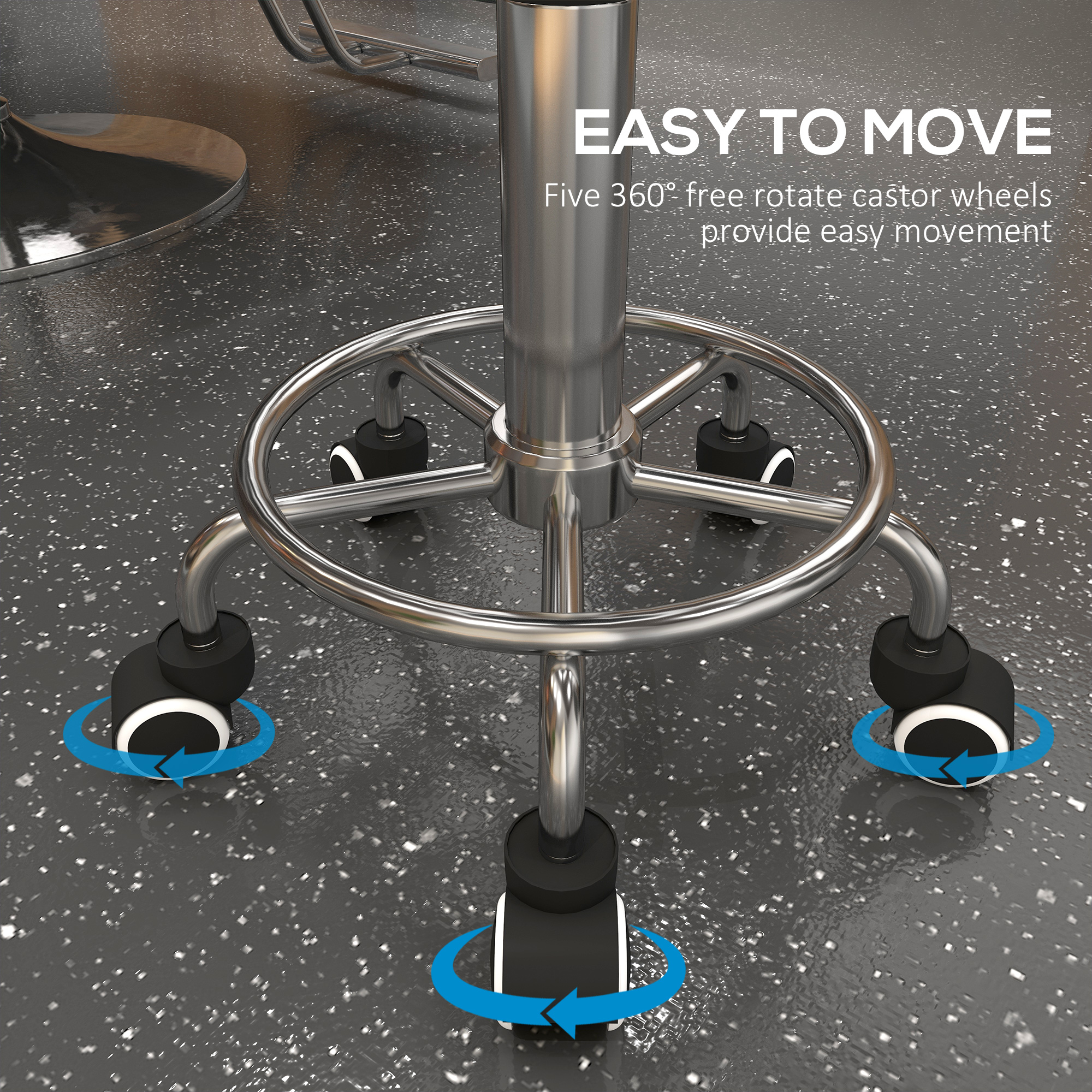 This hairdressing chair from Vinsetto provides maximum comfort and freedom as you work, whether that be as a hairdresser, dentist, beautician or so forth. The swivel chair uses a steel frame for a solid structure, set to different height works for you. It is fitted with padded seat for comfort, PU leather which can be wiped clean. There are five castor wheels for easy movement, with a footrest for extra comfort. An easy way to move easily around clients and perfect that haircut or treatment.