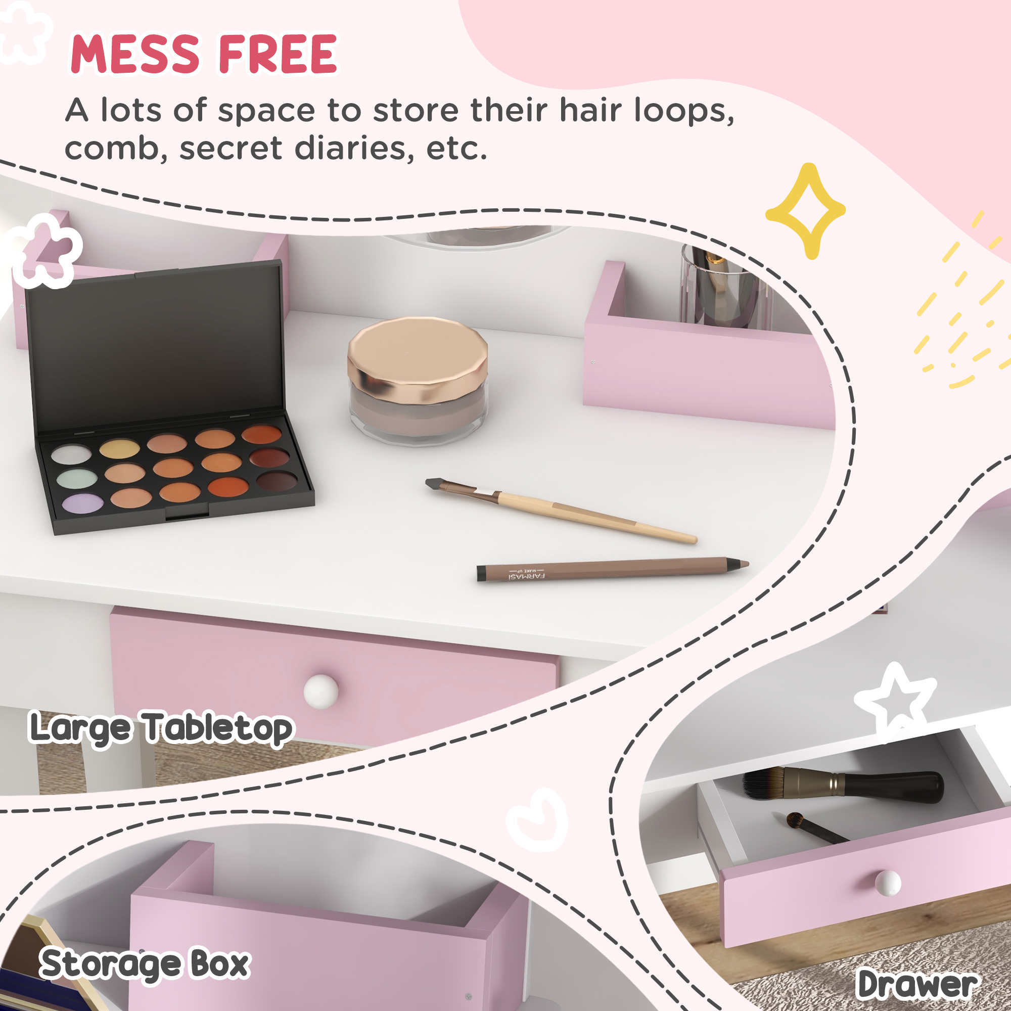 - A kid's bedroom set, which includes a kids bed, a vanity table, matching stool and mirror