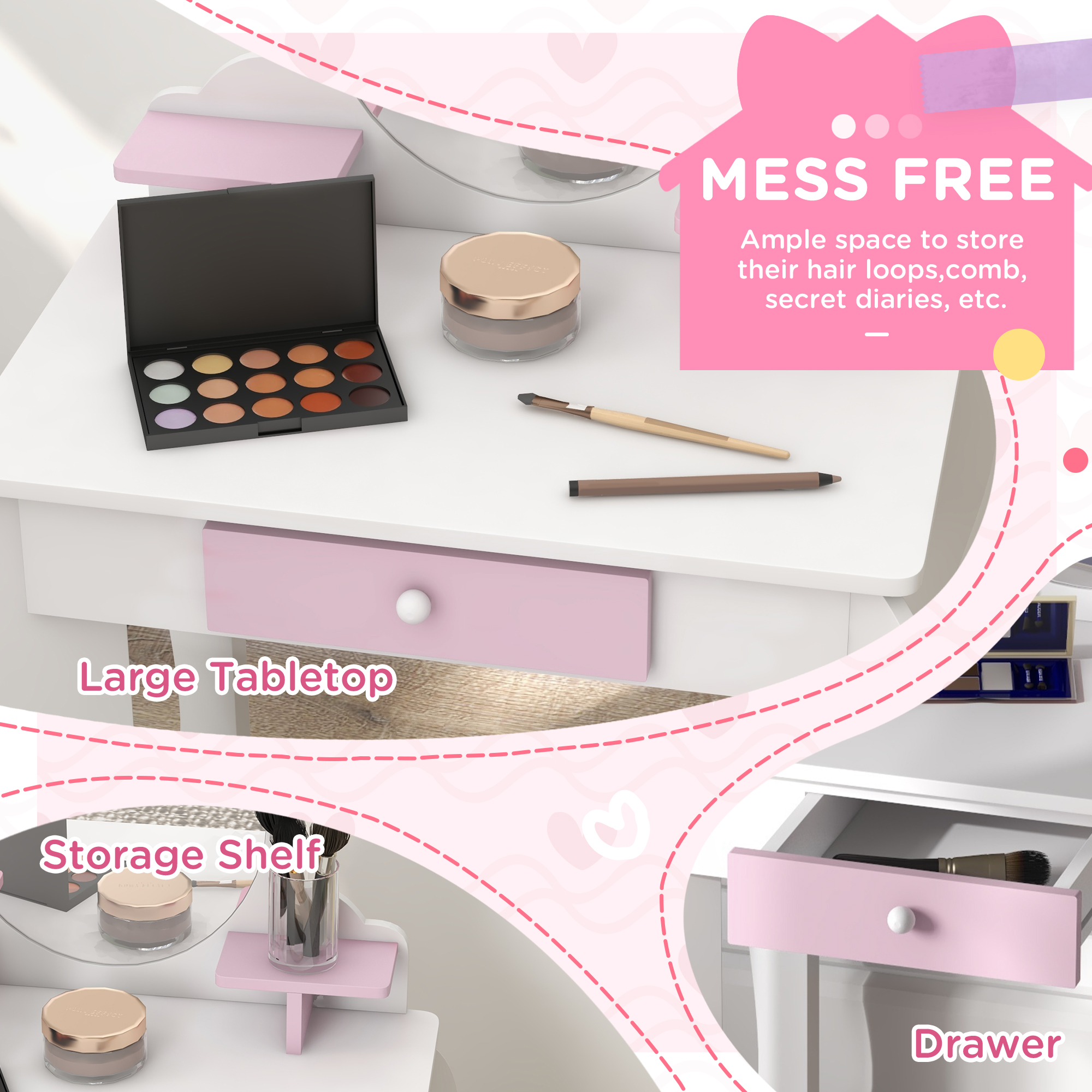 • Three-piece set, includes a vanity table, matching stool and kid's bed