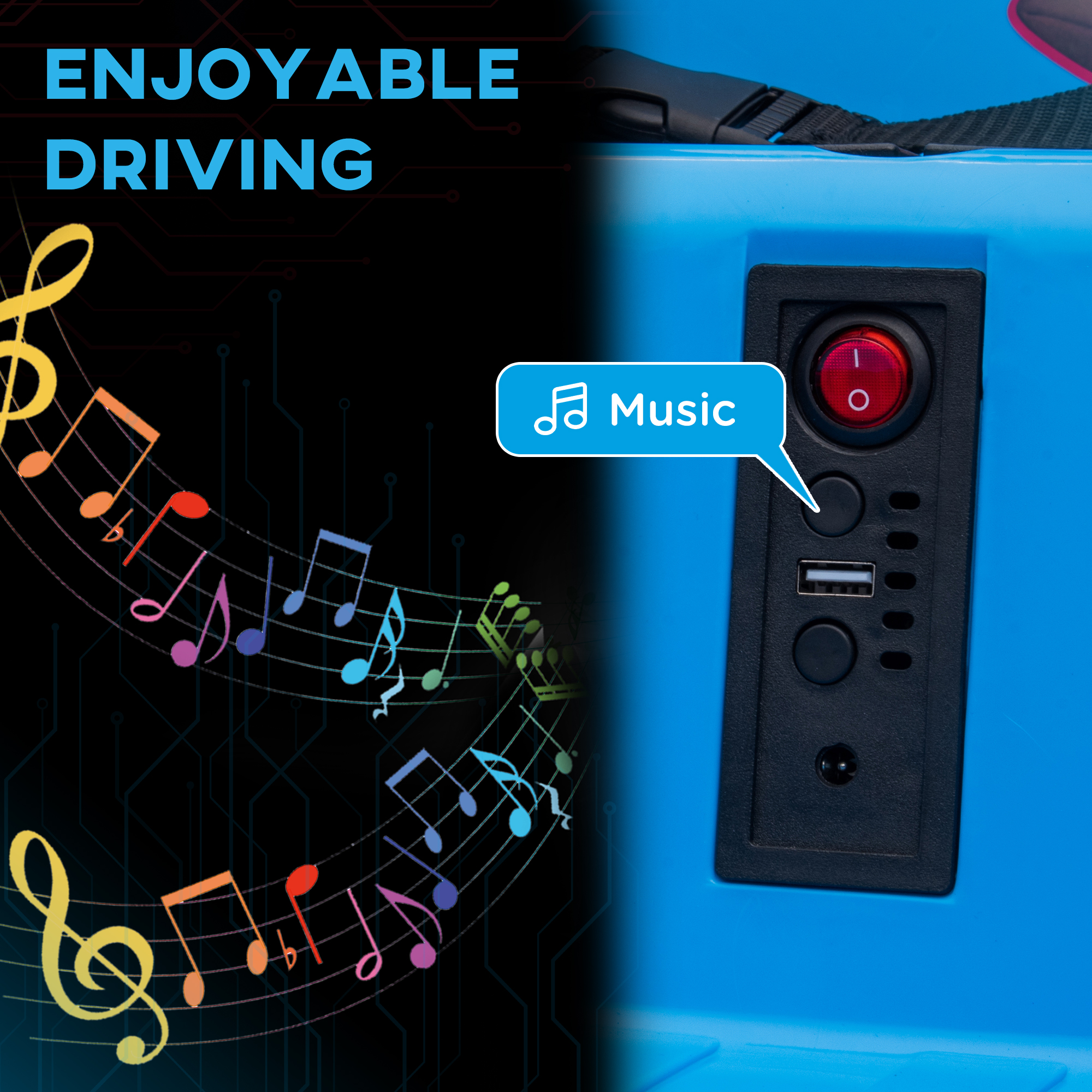 - USB, music and LED lights for entertainment
