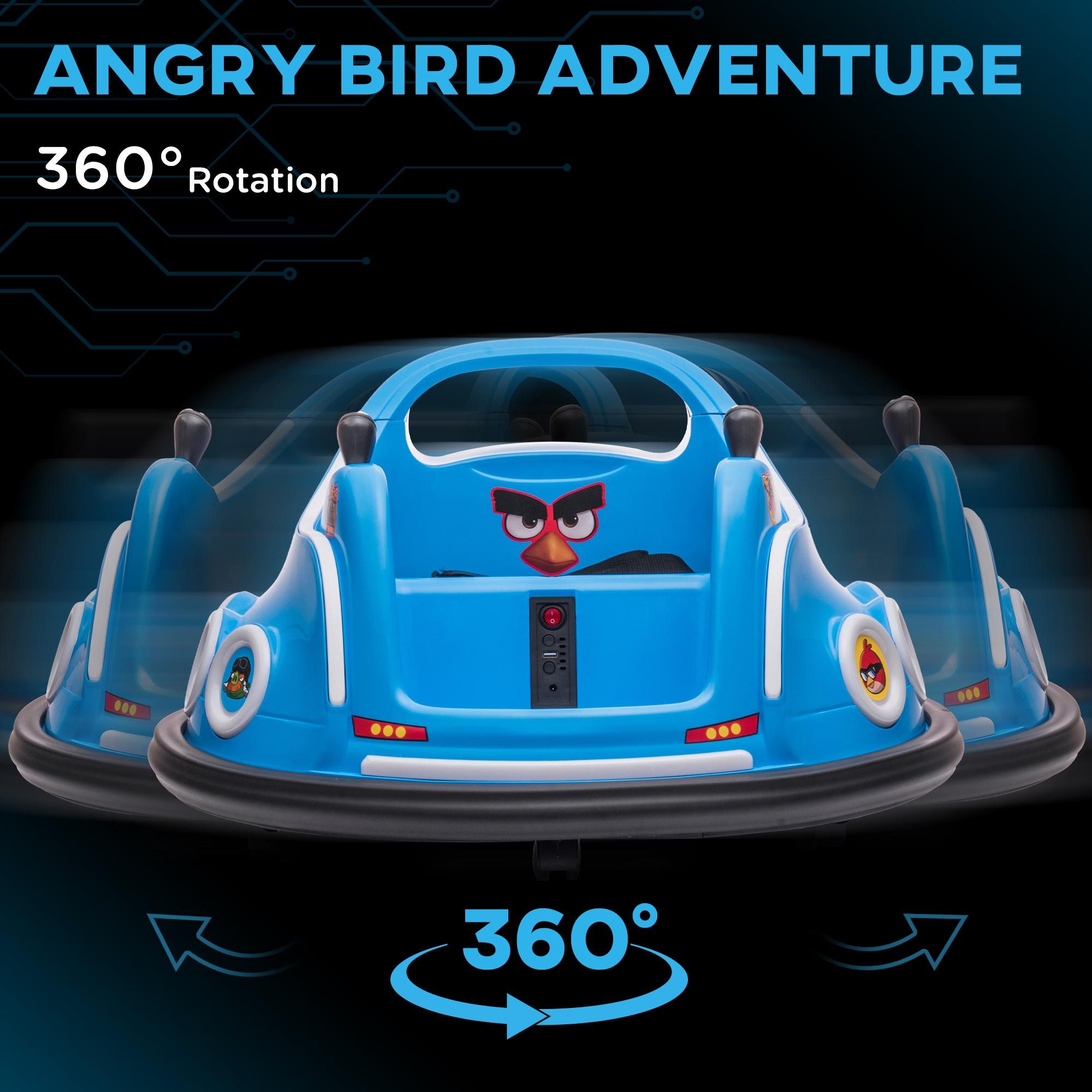- Rotates 360° like a real bumper car