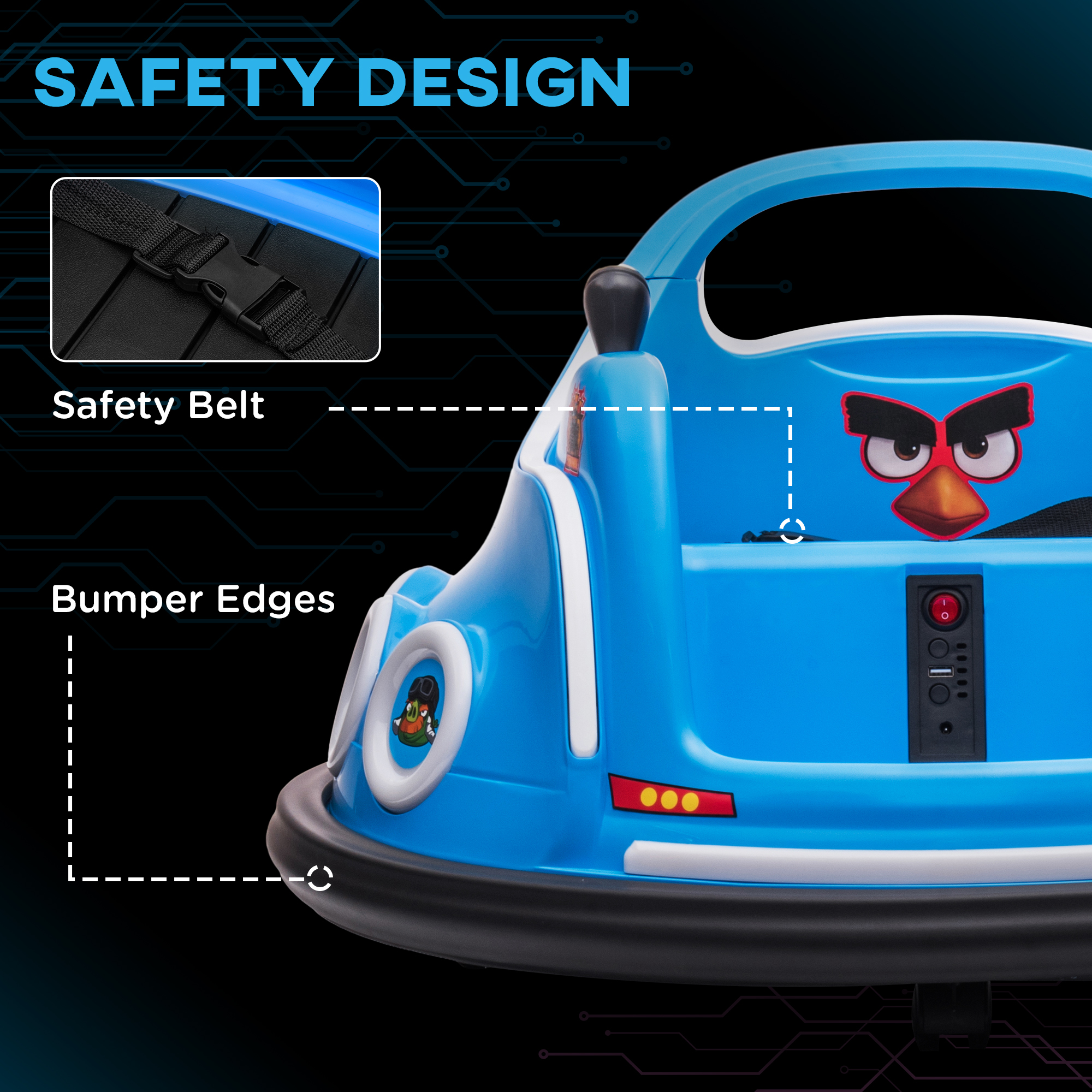 A theme park classic, right at home – this AIYAPLAY Angry Bird bumper car brings big thrills for kids. With 360° spins, the ride on car feels just like the real thing and can be remote-controlled or self-driven, so both kids and adults can join the fun. The plastic shell and soft bumper edges keep rides safe, while built-in music, a USB port and LED lights add extra excitement, making every playtime feel magical.