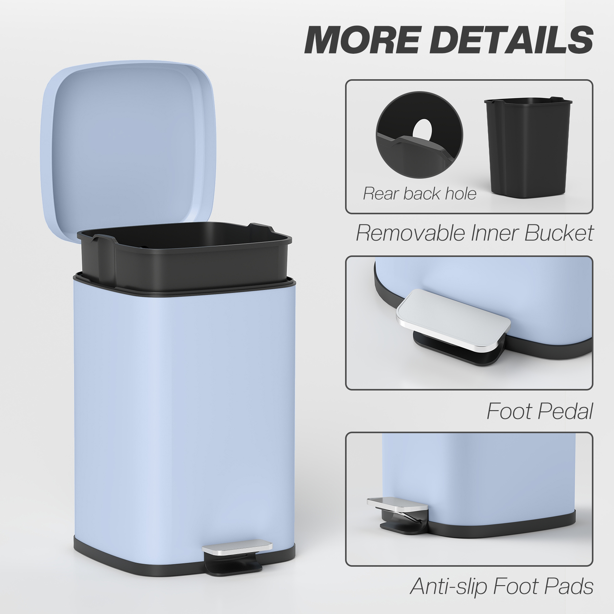 Compact hygiene, for the kitchen and beyond: this HOMCOM modern boxy 20L dustbin for kitchen. Made from metal, this is tough piece suited for everyday use. The pedal opens the lid for hands-free use, with a gentle closing to avoid it disturbing your family. The stay-open option and removable inner bucket makes cleaning super easy. So, when you feel stuck on space, go for this small but mighty pedal bin.
