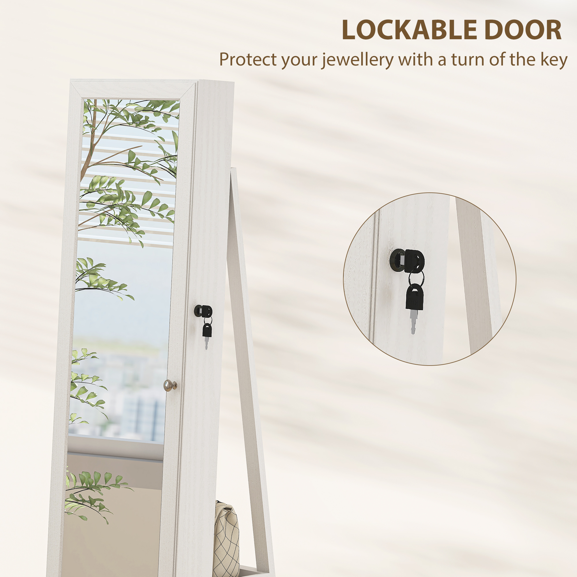 This is a must for the make-up and jewellery fanatics - a place to get ready and keep everything securely stored. The HOMCOM jewelry organiser is formed of a large mirror, inner storage and back storage. Inside the compartment for earrings, bracelets, necklaces, etc., with small inner mirror so you don't have to take everything out once when getting ready. It moves from side-to-side in a full 360° motion so you can see it any angle. Finished with three shelves on the back for extra storage.