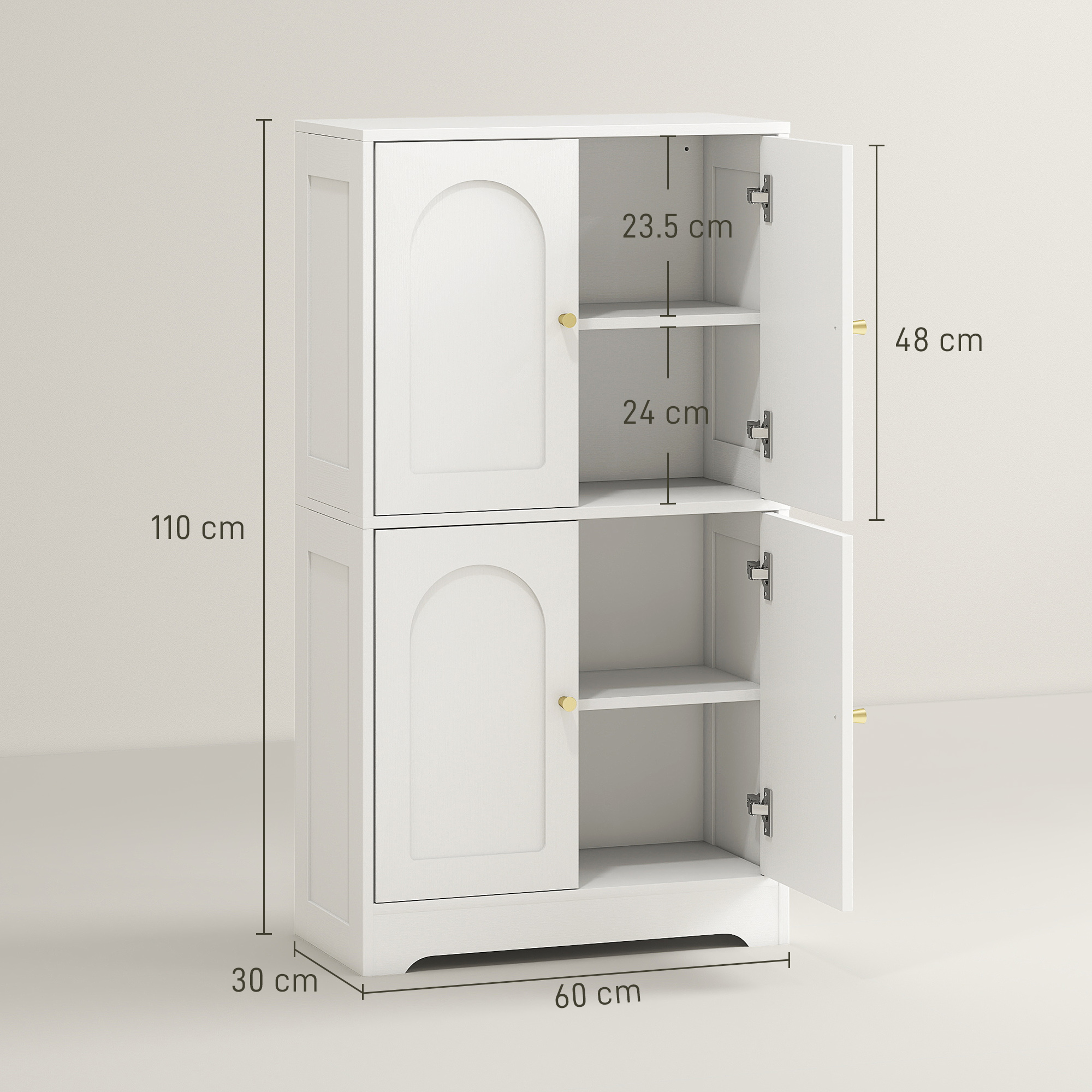 Transform your space with the HOMCOM pantry cabinet, where style meets functionality. Adorned with arched curve door panels and chic gold tone handles, this white kitchen storage cabinet enhances any room. Enjoy organised bliss with two-tier cupboards and adjustable shelves, great for any kitchen, bathroom, or hallway. Let this kitchen storage unit be your go-to solution for turning clutter into calm, making daily life just a little bit more delightful!