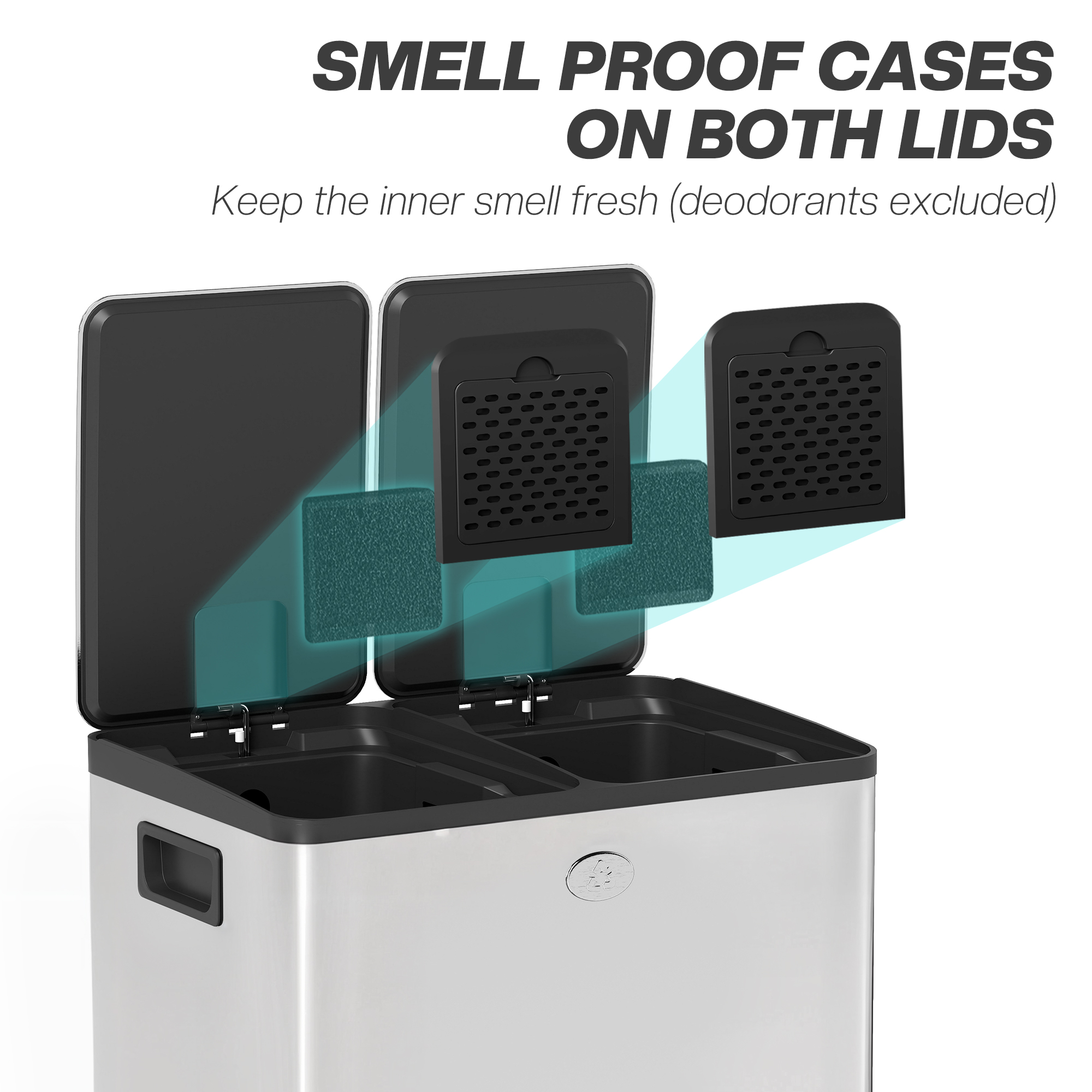 HOMCOM 40L Dual Compartment Stainless Steel Bin, with Deodoriser Holders - Silver Tone