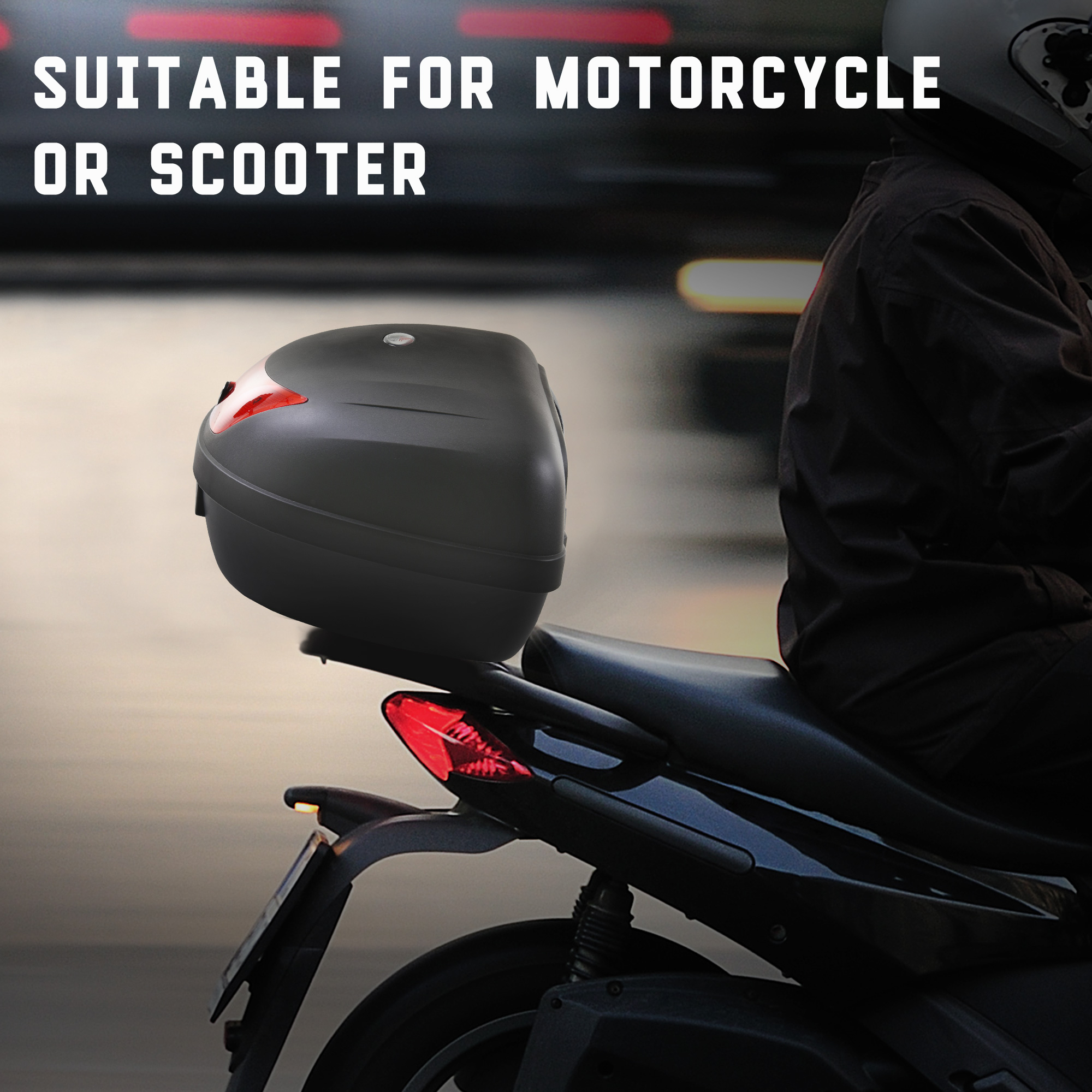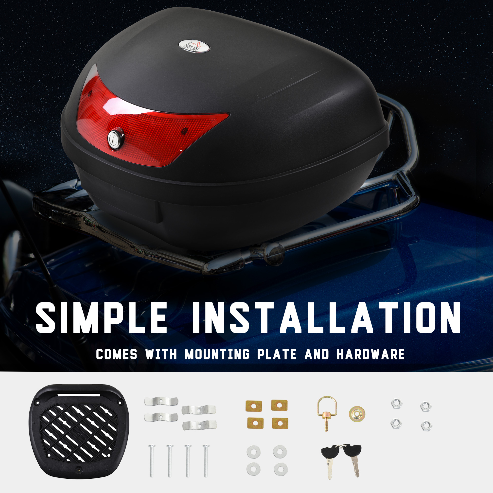 HOMCOM motorcycle trunk is specially designed for motorcycle riders, which is used to put their belongings when they travel. Besides the daily water cup, wallet, etc., with a large capacity of 48L, it can also put down your helmet. So you don't have to hold a heavy helmet in your hand anymore. The red reflective strip at the back of the suitcase, 2 keys and all kinds of related accessories are ready for you. You just need to buy it home and use it easily.