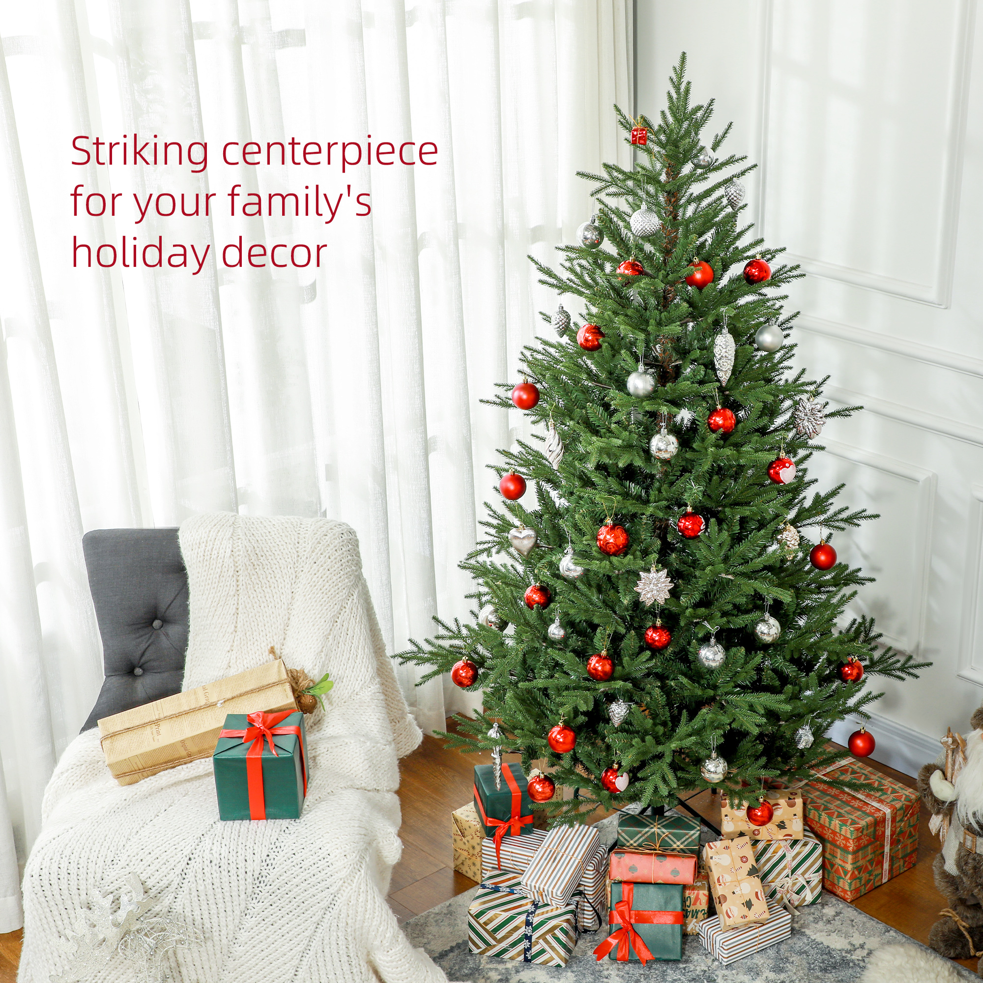 Bushy and beautiful, this HOMCOM artificial christmas tree is the season centrepiece here to make an impression. It comes completely bare so you can dress it with favourite decorations and lights. And it's easy to set up too: simply fit the pieces together and allow the hinged branches to fall into place - and then you bend to how you want. Xmas tree is complete with a metal base so it stands steady in place.