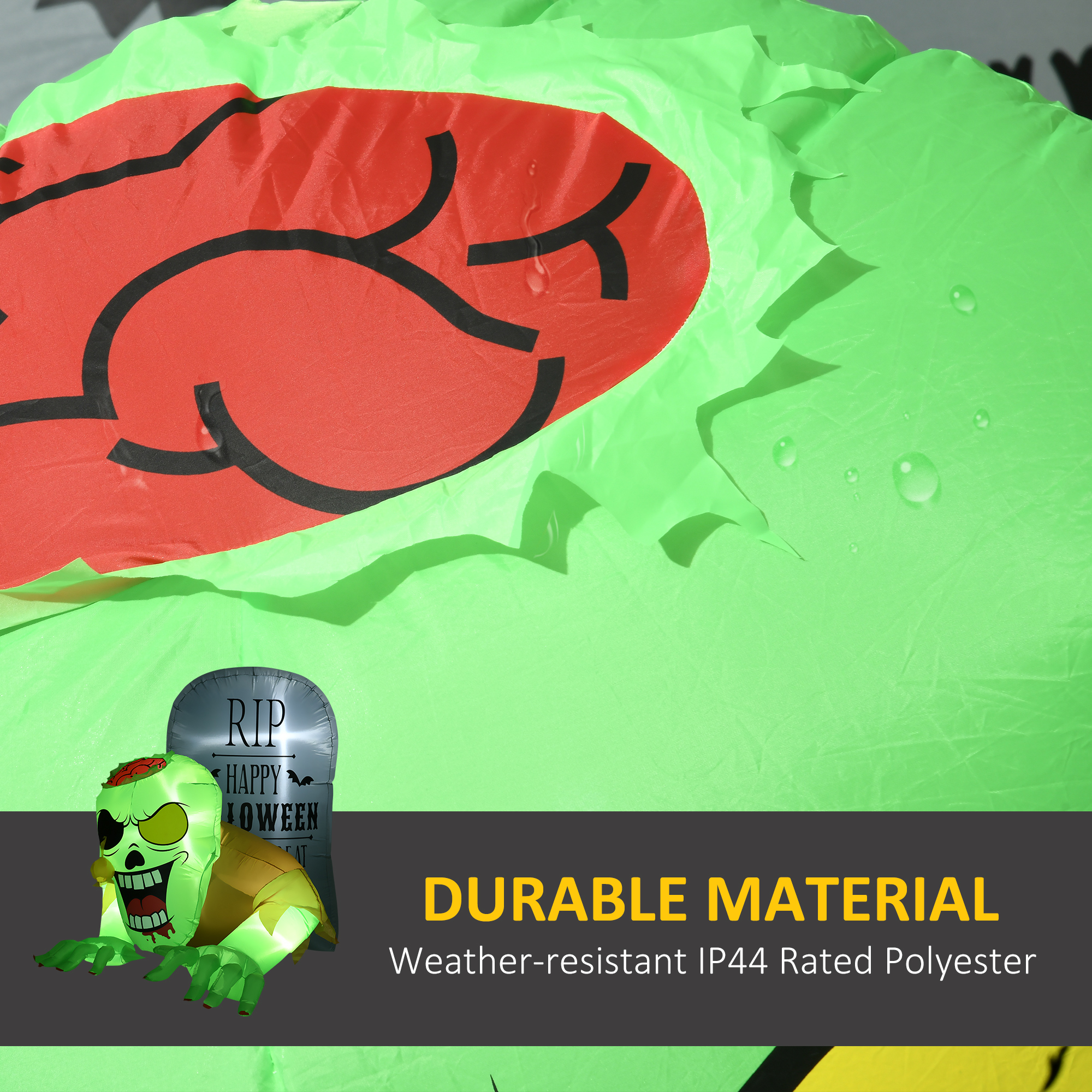 Fun and fright for all this Halloween: adorn your home differently with this HOMCOM 5ft inflatable decoration. A corpse ghost coming out from a tombstone makes it perfectly suited to the season. It features four LED lights inside, so when dark, this inflatable emits a cool glow for extra spooky effect. A polyester shell for durability, it comes IP44 rated - safe for use in light-medium rain. Set comes with seven ground stakes, three guy ropes and a sandbag.