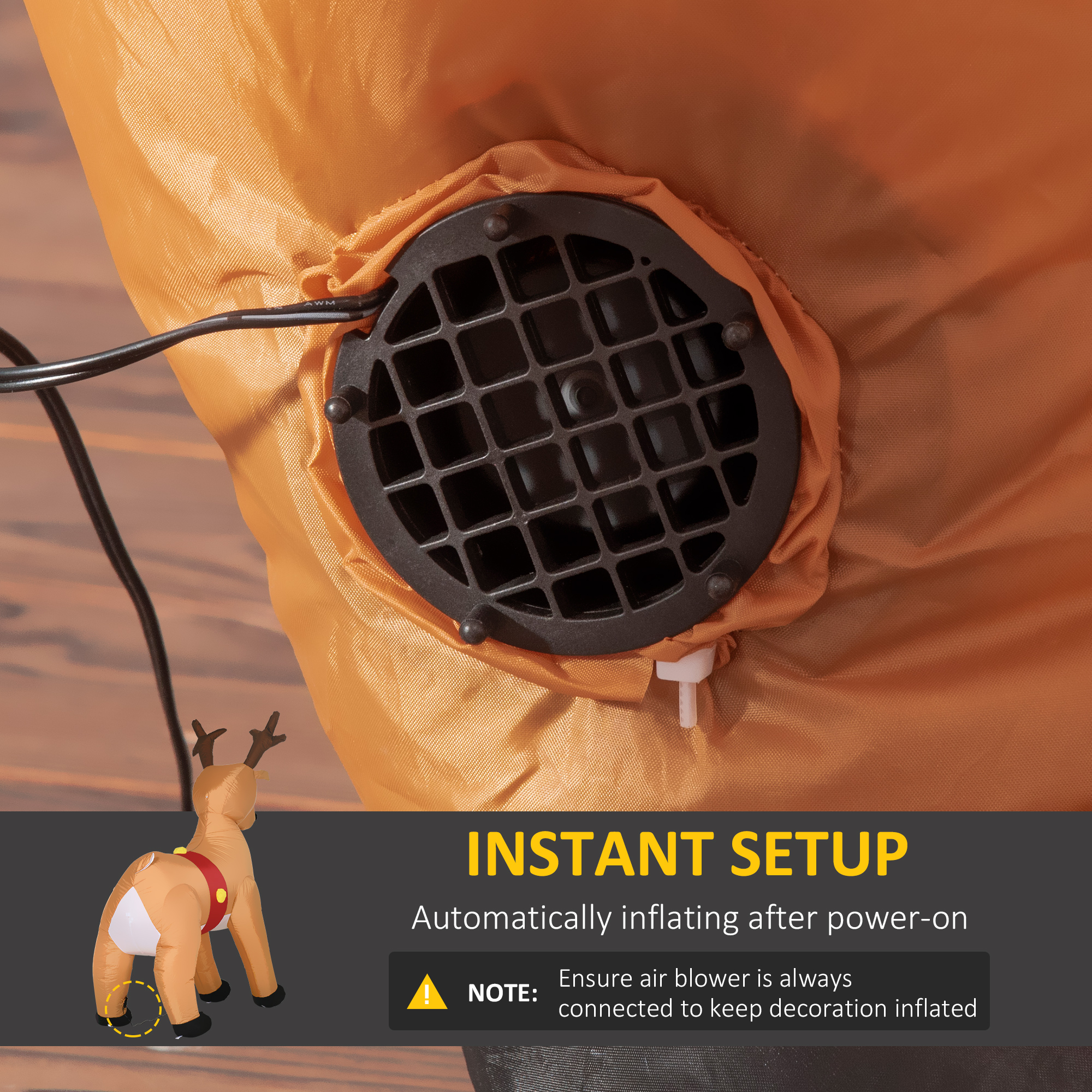 Create a cute and fun festive this Christmas - both indoors and outdoors. Create it with this Reindeer inflatable from HOMCOM. Made from water-resistant polyester, the shell is safe against light water, with inner LED lights for a gentle glow when dark - the perfect centrepiece for your party. It's easy to set up, too: simply plug into power for it to blow up. Comes complete with all accessories you need for it to stand in place.