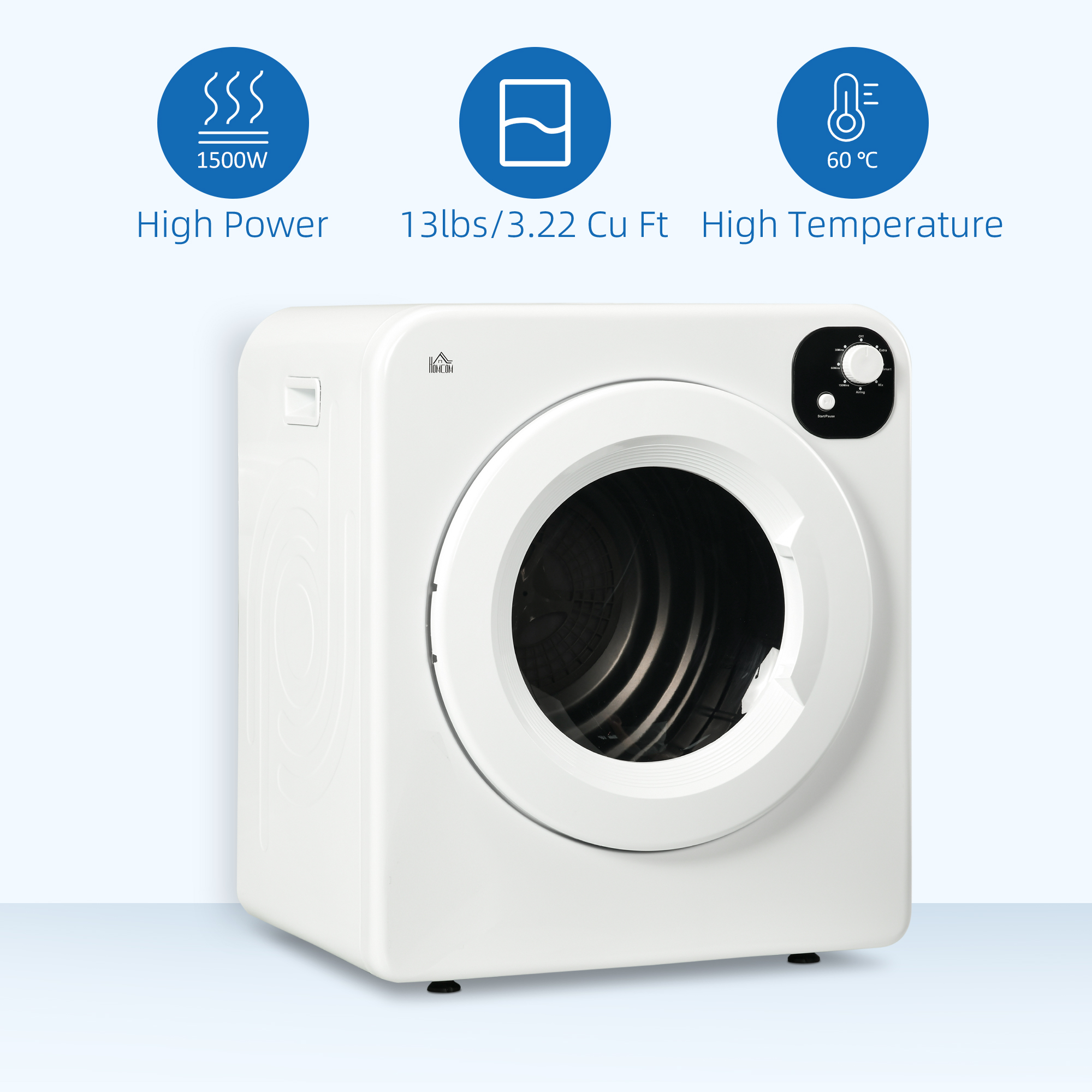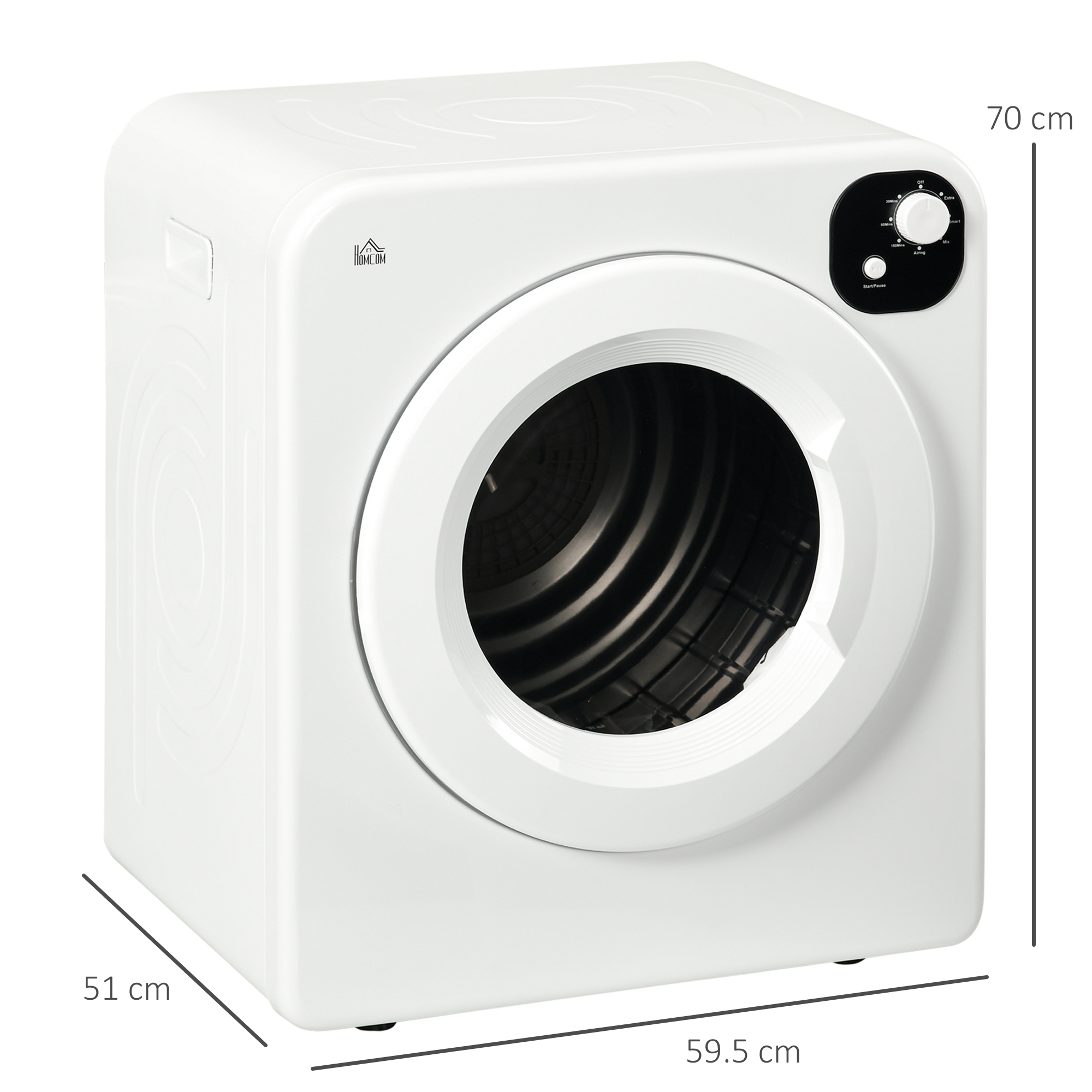 Drying clothes no longer means laundrettes trips. Bring in this HOMCOM compact tumble dryer. Weighing only 27kg, it can easily be mounted to the wall, placed on top of your washing machine or left standing alone: the choice is yours. It features seven modes to dry clothes different ways. Its 6kg capacity holds the equivalent of 15 t-shirts, one duvet set and 35 smaller towels at once - great for personal use! All you need to do to is load, press the button and wait for perfectly dry clothes.