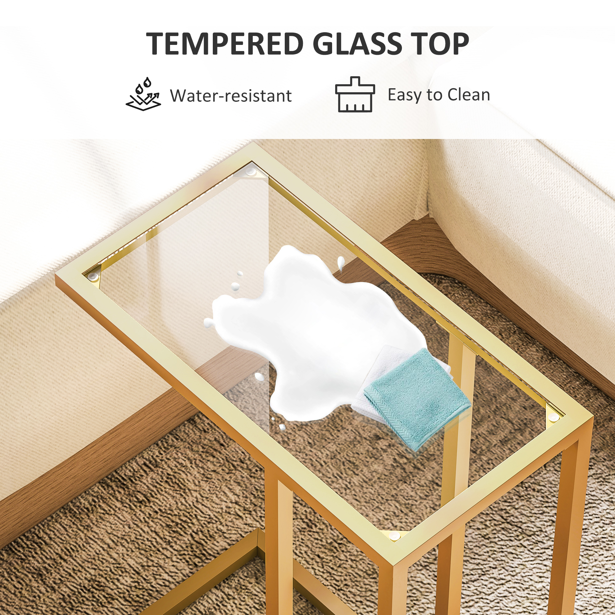 Discover the sleek HOMCOM glass side table, a great blend of simplicity and elegance. Doubling as a narrow side table or slim sofa table, it features a tempered glass top and a powder-coated steel frame for durability and style. PP foot pads protect your floors, while its slim design makes it a stylish yet space-saving addition to your living room, bedroom.