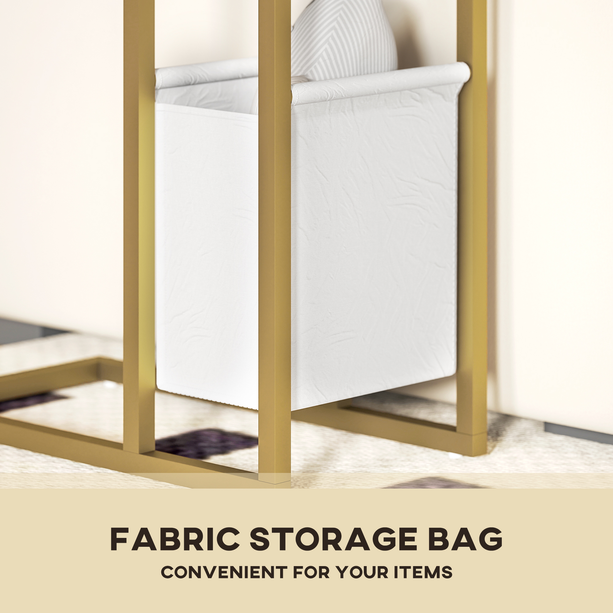 - Flat tabletop and bottom fabric storage bag keeps essentials within reach