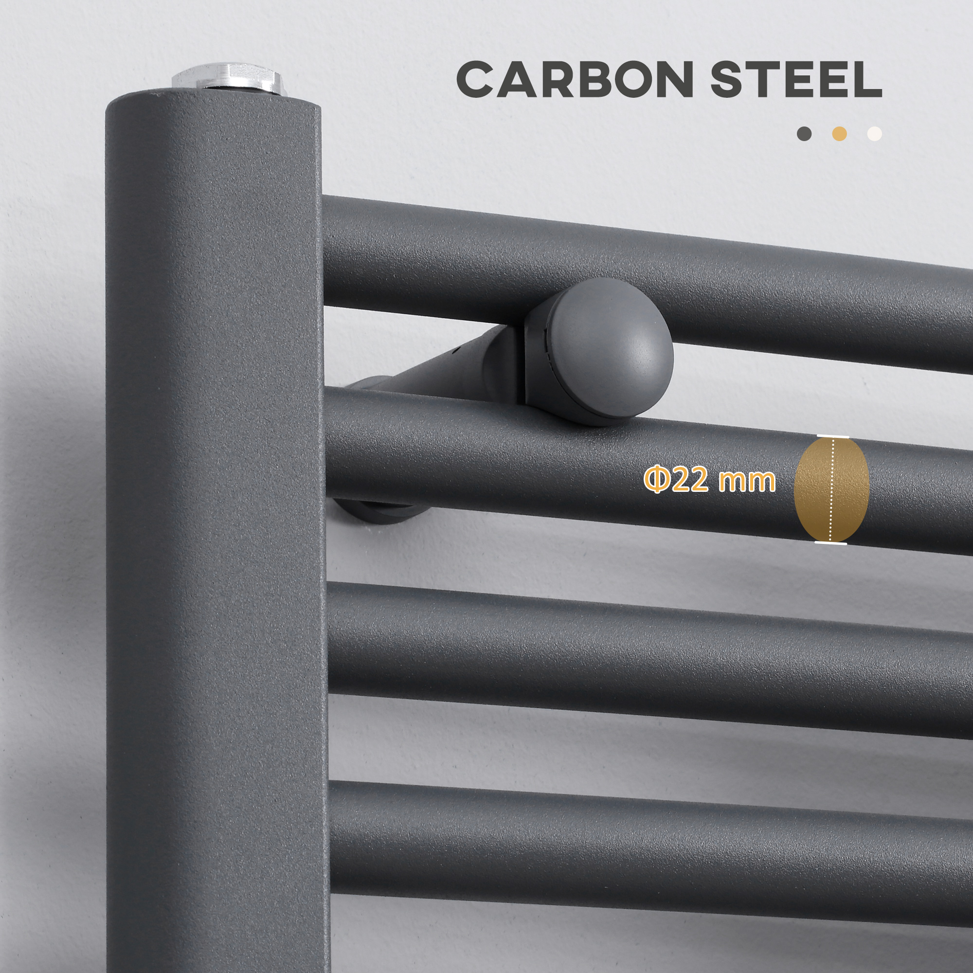 Warm towels as soon as you step out the shower? Who could resist? Turn those thoughts into a reality with this on-wall heated towel rail, from HOMCOM. Made from carbon steel for strength, the three section, 25-bar design gives plenty of room for plenty of towels and robes - suitable for family households. The water-filled design makes circulation even, so the towel ladder efficiently keeps at the same temperature all over. Attach to the wall, connect to central heating and go.