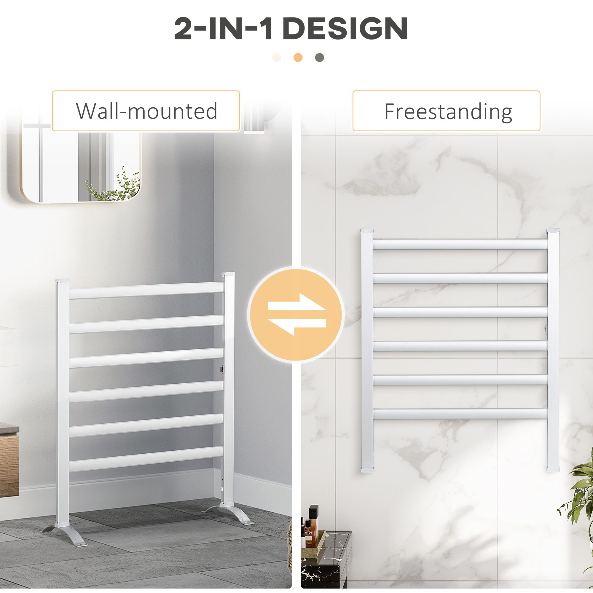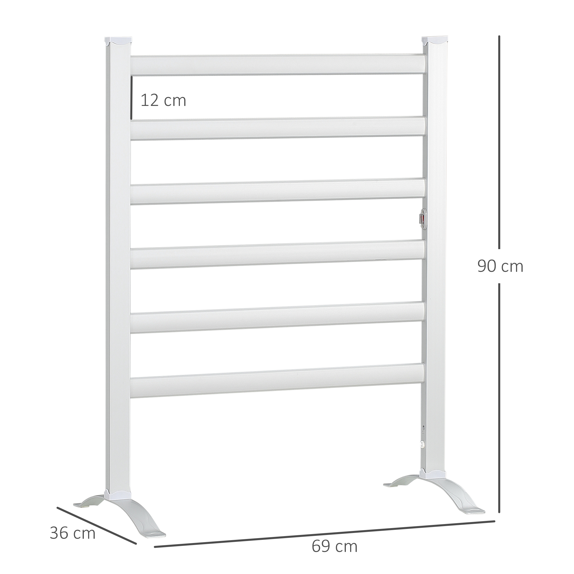 This HOMCOM electric towel rail warms towels, and keeps them warm for when you're ready. A freestanding and wall-mountable design, you can set it up to wherever you want. There's six rails, so there's plenty of space for you and the family. Made from aluminium for strength, it's IPX4 rated: safe against water splashing. Simply plug in and start enjoying warm towels and gowns.