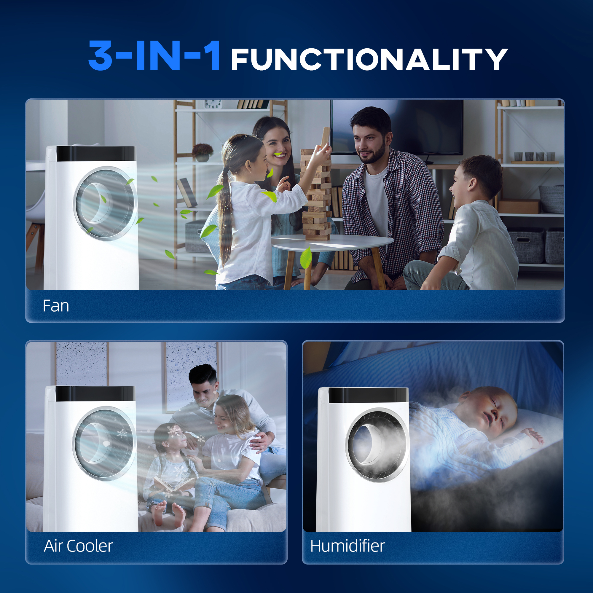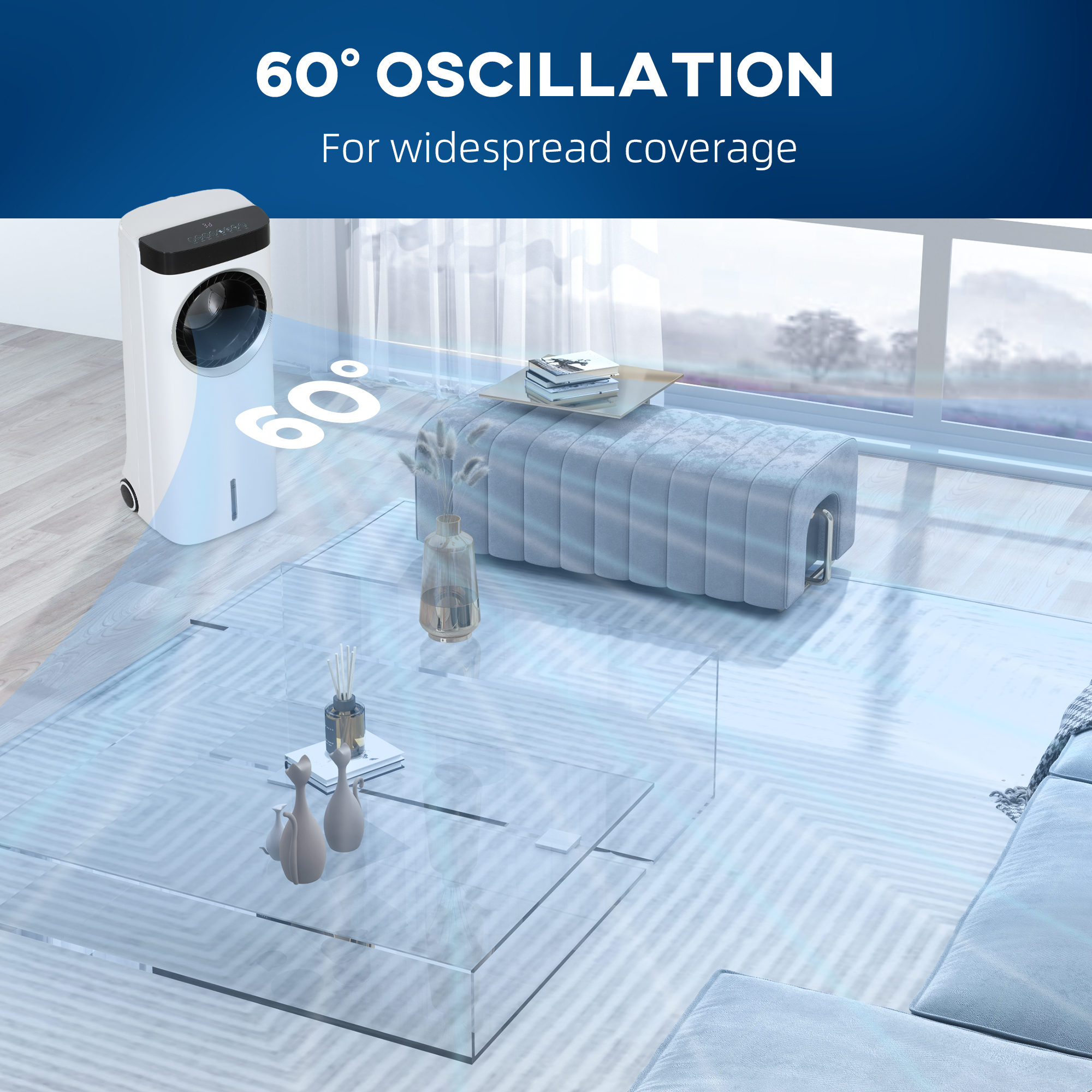 Experience a fresher breeze with the HOMCOM Air Cooler Fan, a blade-free design that ensures safety for young members and pets alongside a gentler airflow. It's a versatile three functions—fan, air cooling fan with two ice packs and humidifier, making it a great choice for your home. Enjoy personalised comfort with three modes and speeds, all while saving energy compared to traditional air conditioners.