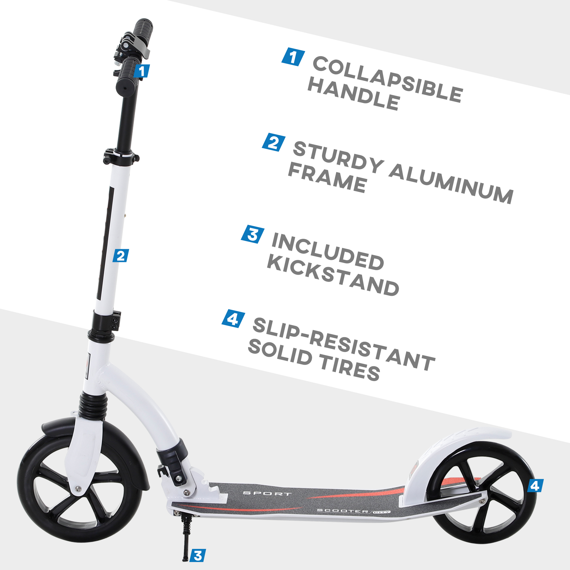 - Back brake for double the choice to stop 2 wheel scooter
