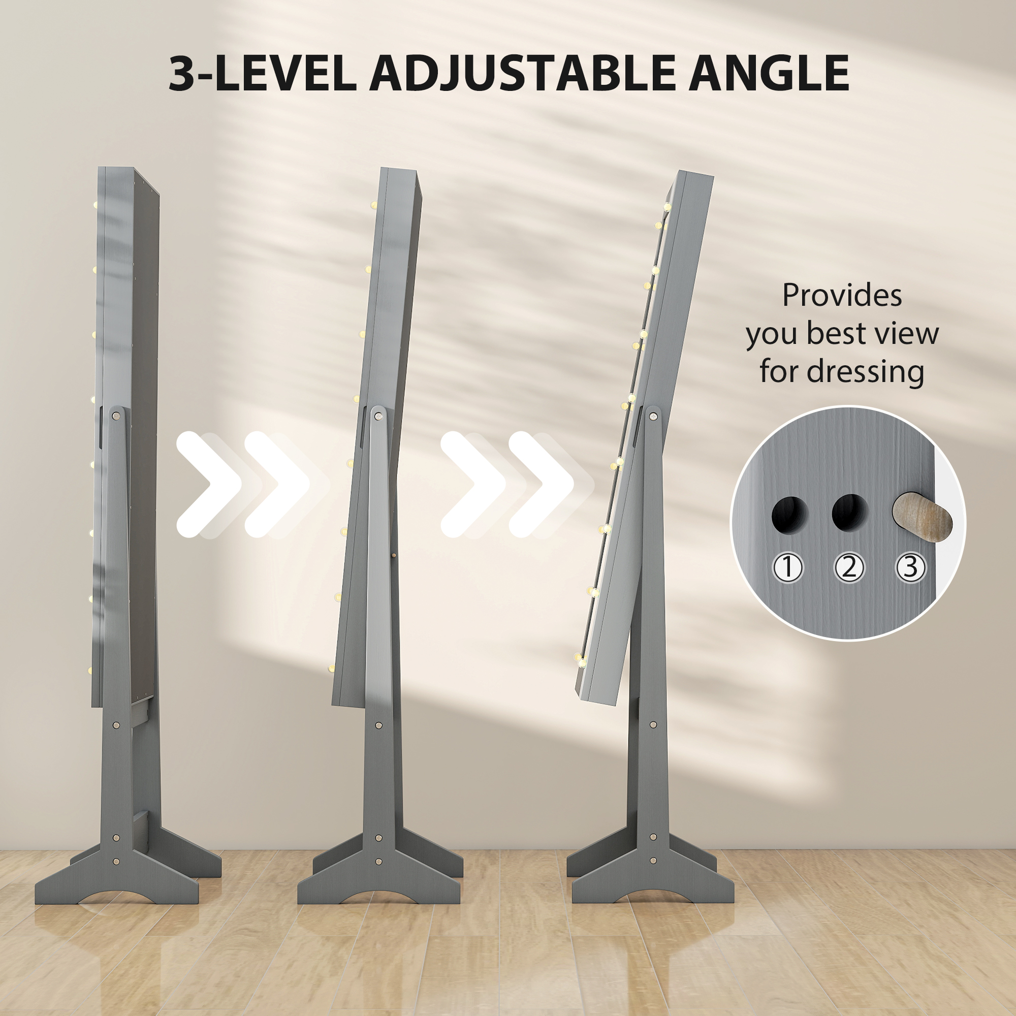 Keep jewellery, makeup and more organised with this HOMCOM freestanding mirror cabinet. It features a longline mirror, surrounding by 16x LED lights - illuminates the mirror so you can ready even in the dark. Open to door to discover 70x ring slots, 32x earring pair slots, 12 hooks and three shelves - plenty of room for keeping all make-up and beauty essentials together.
