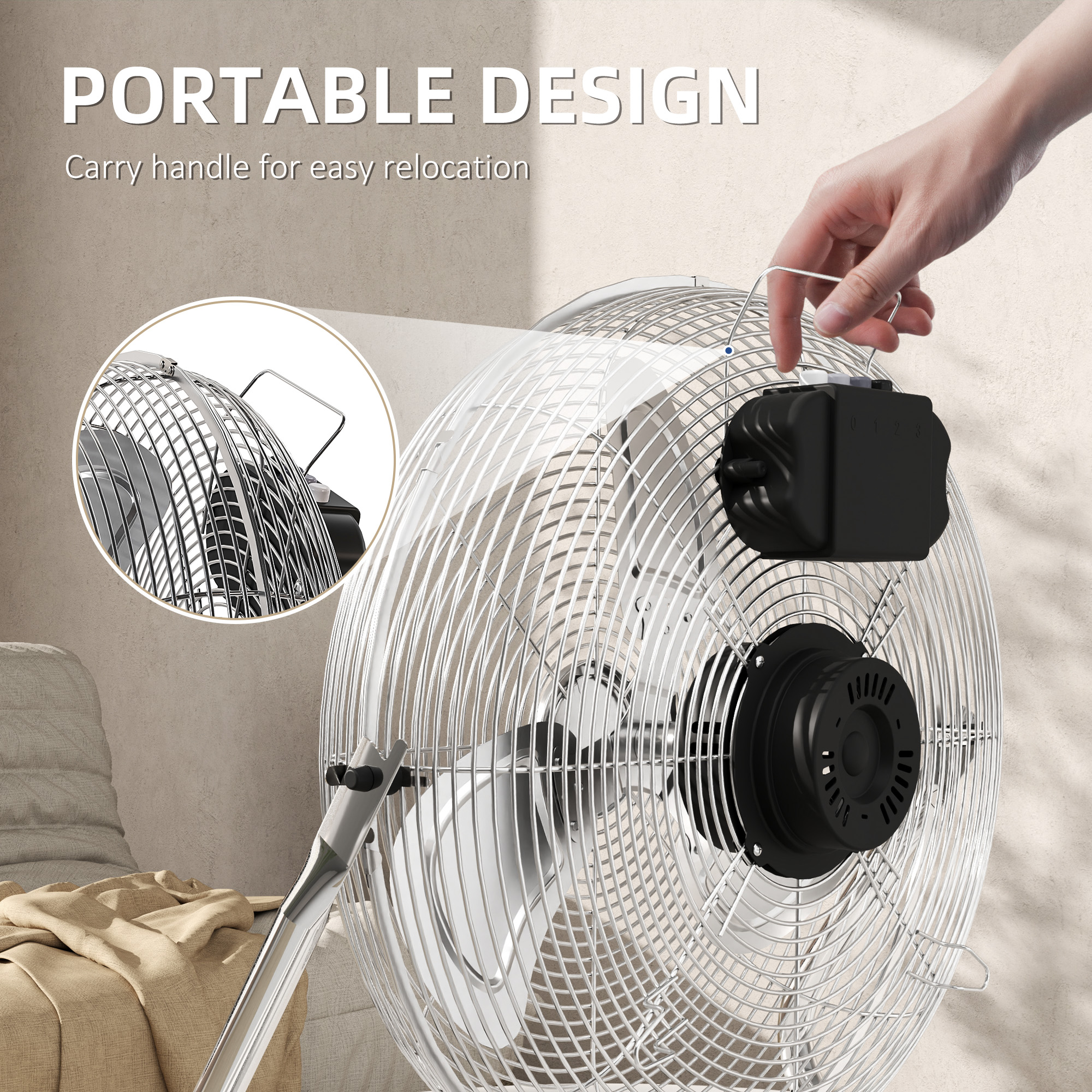 HOMCOM Metal Floor Fan with 3 Speeds & 120° Adjustable Tilt - Silver Tone