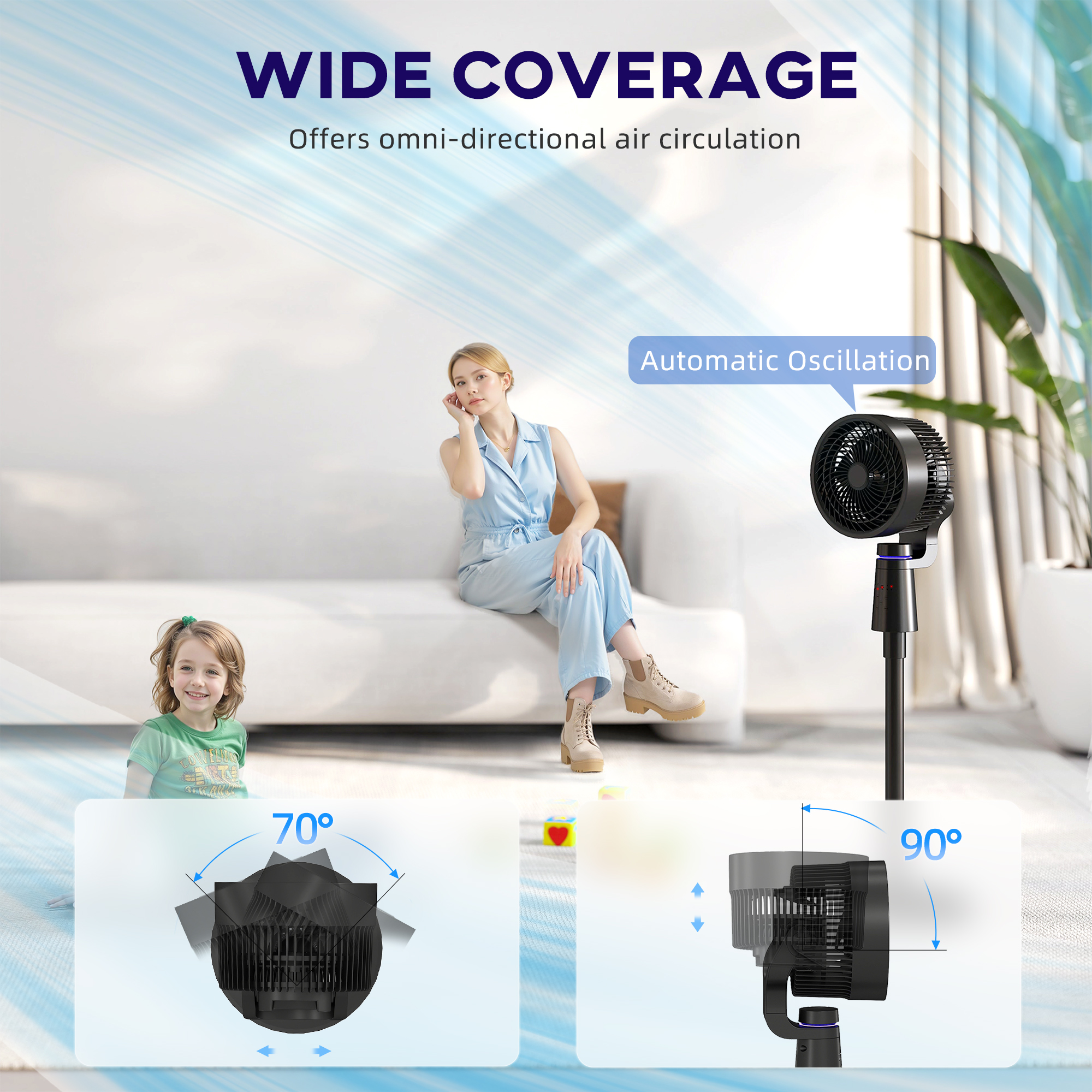 - Auto 70° horizontal and 90° vertical oscillation for wide 3D coverage