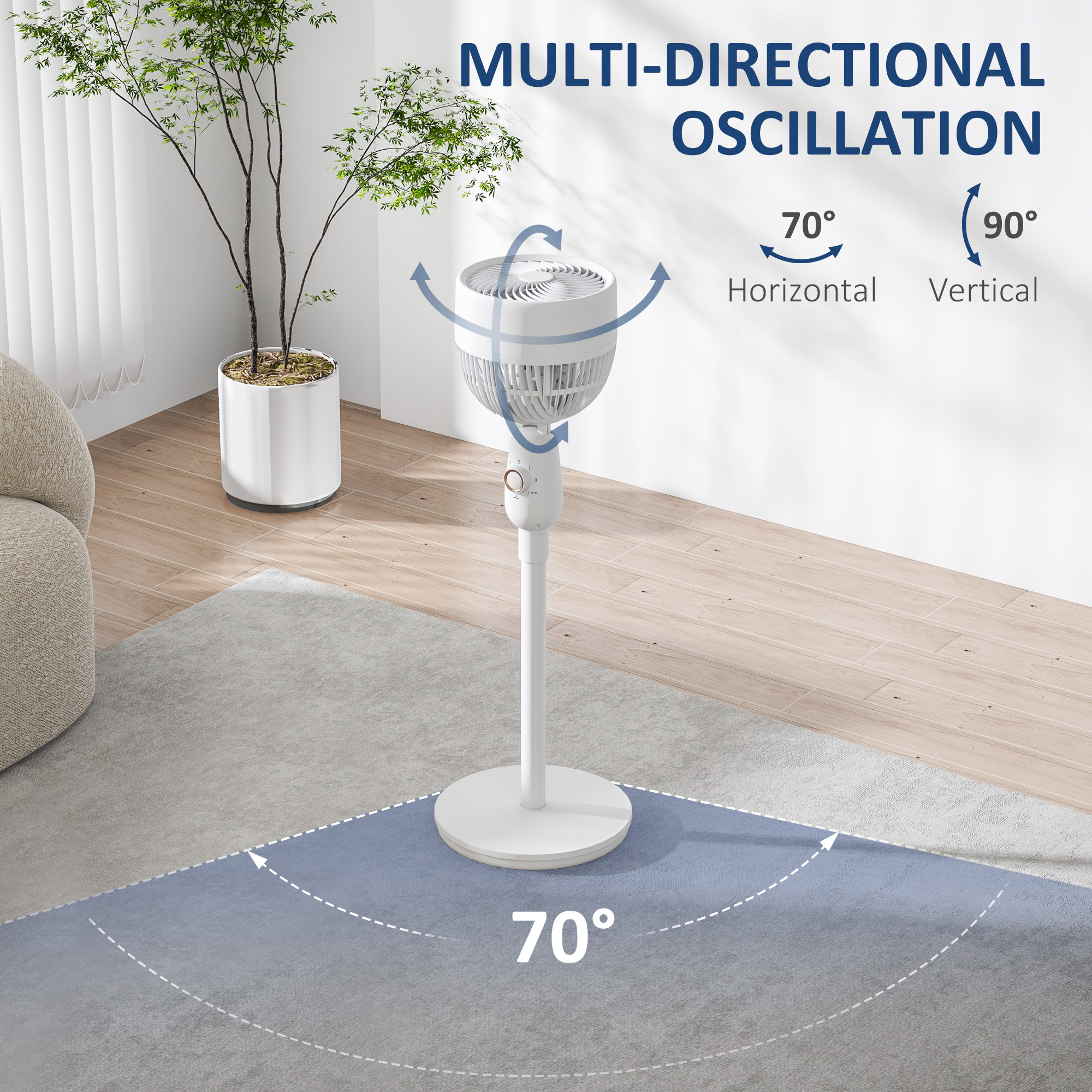 - Oscillation function ensures even air distribution