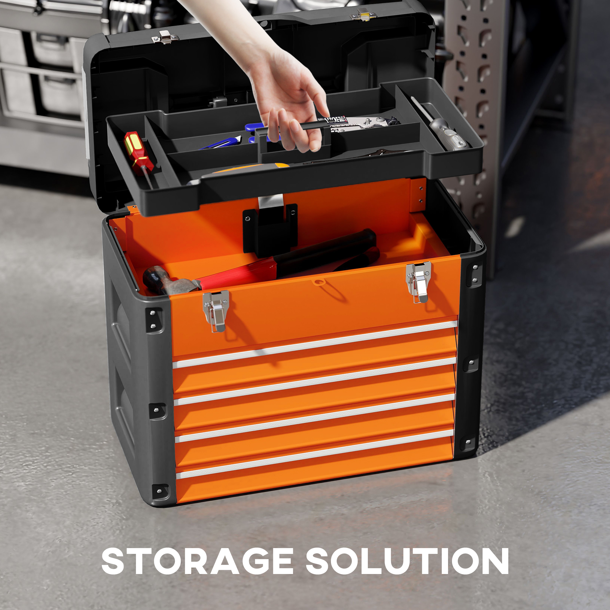 - The top chest is equipped with carrying handles for easy transport